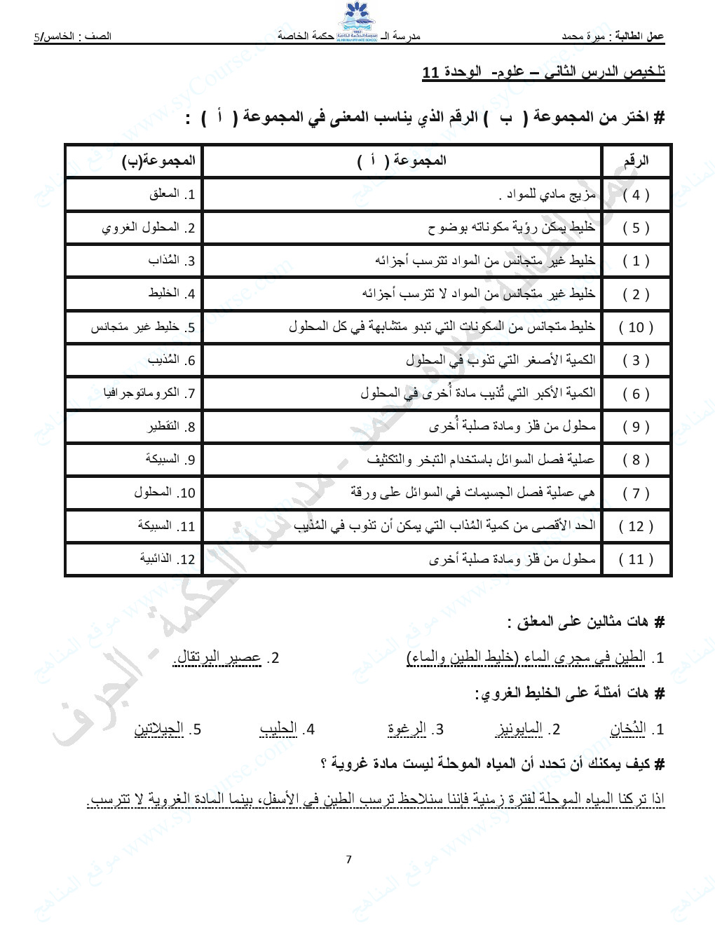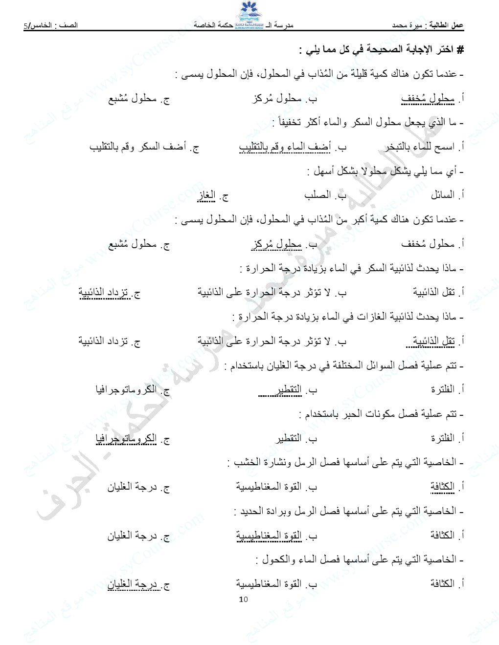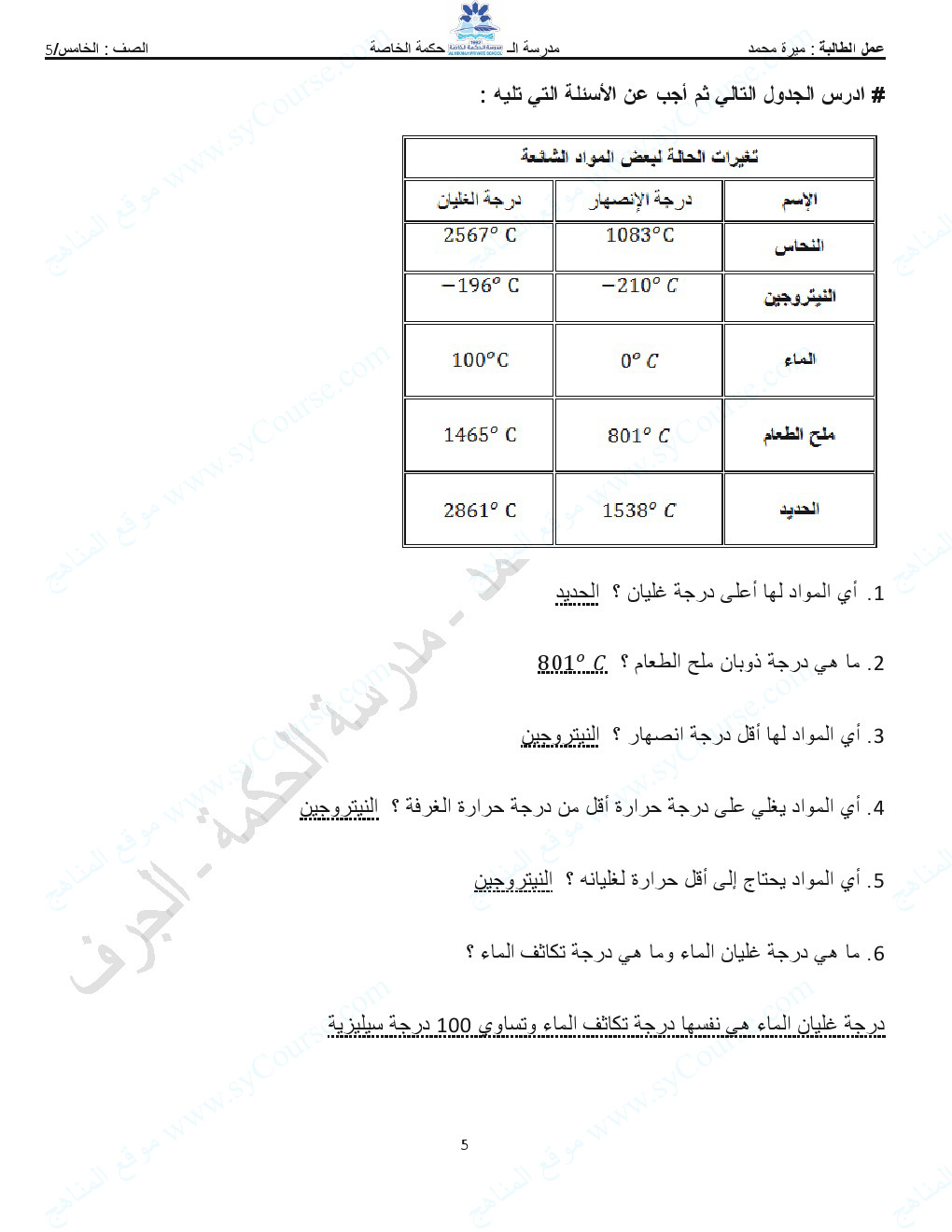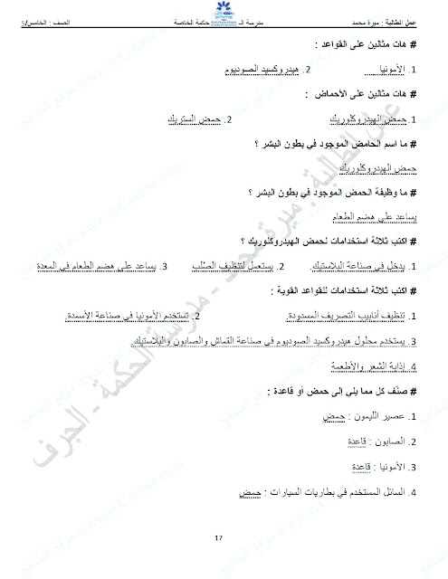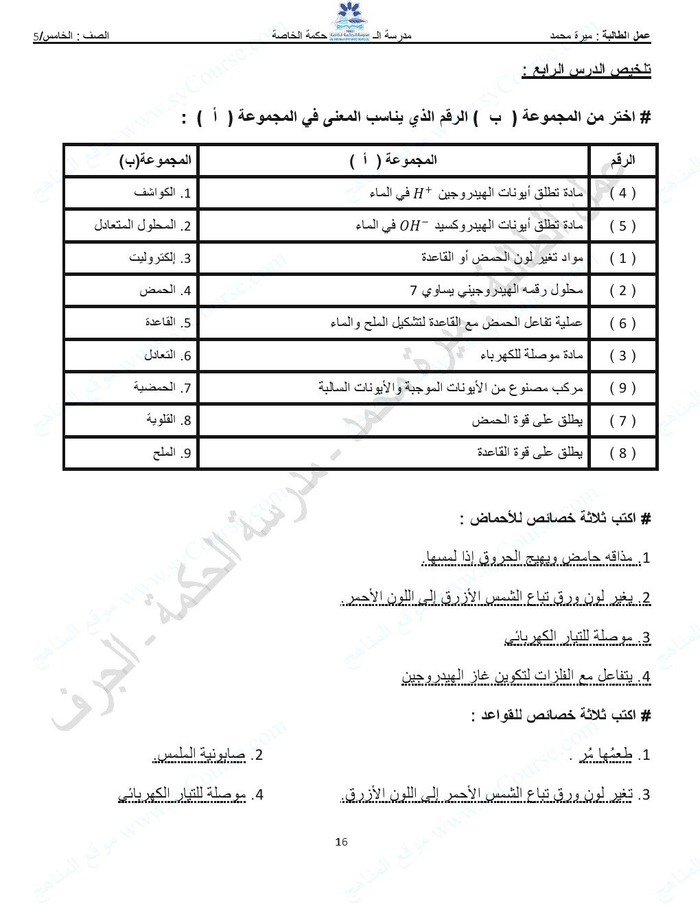 معلومات الملف: الصف الخامس, الفصل الثالث, علوم, أوراق عمل أول 4 دروس مع الإجابات | |||