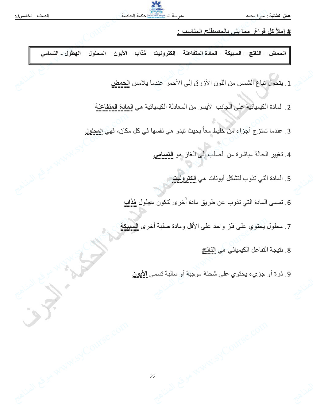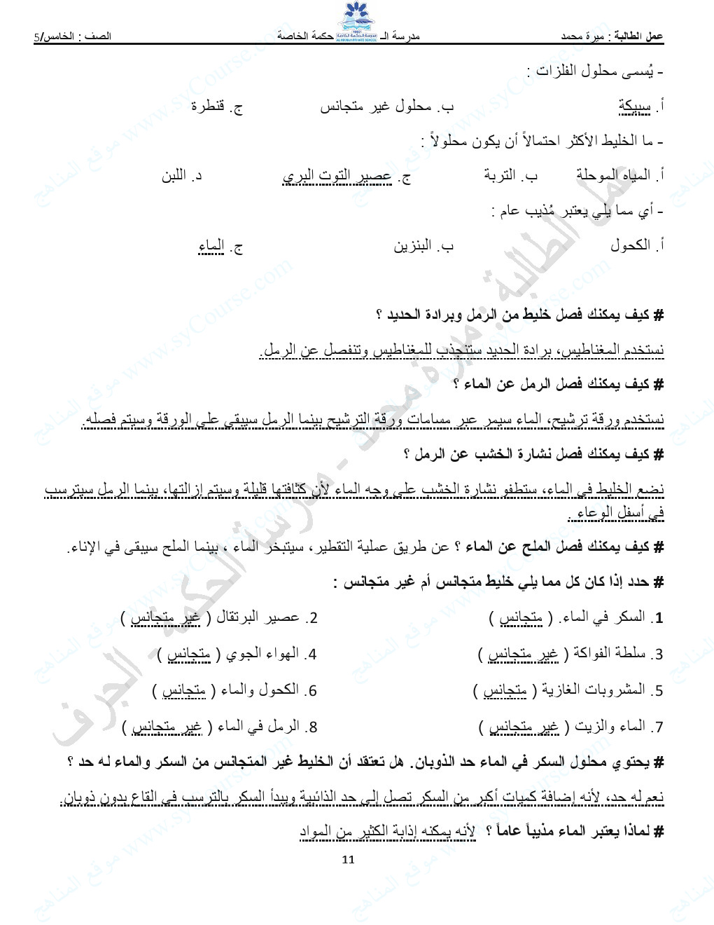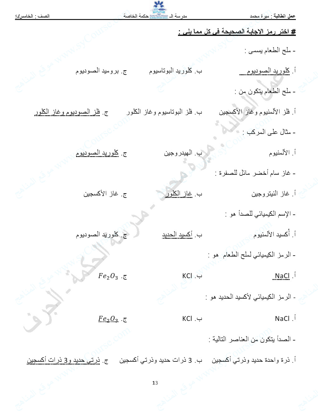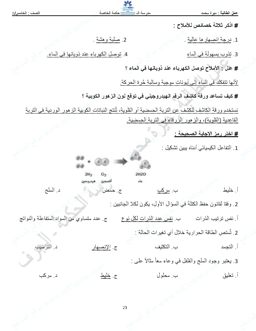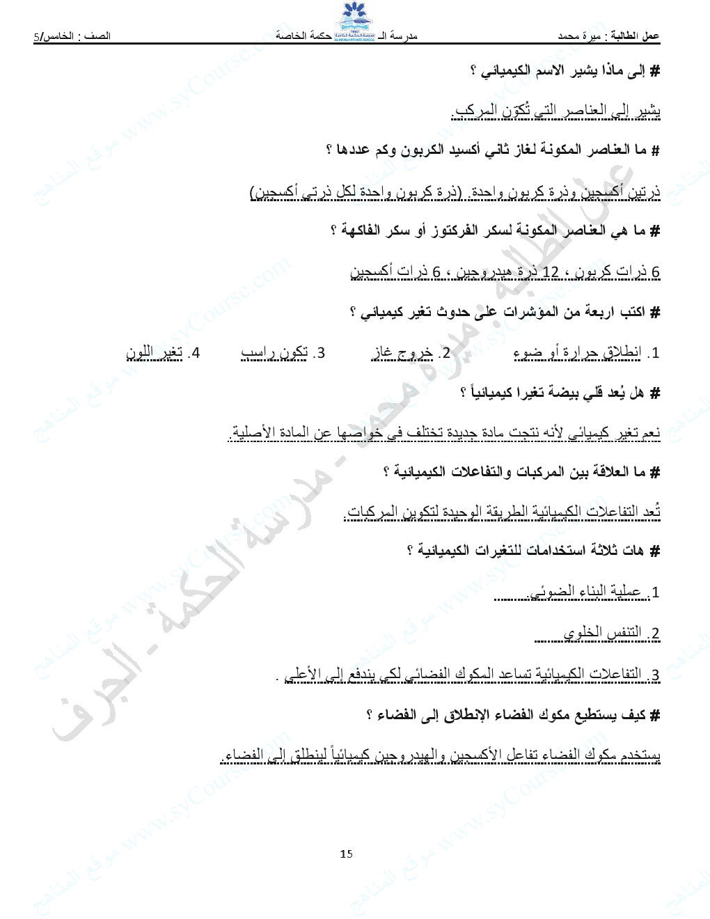 معلومات الملف: الصف الخامس, الفصل الثالث, علوم, أوراق عمل أول 4 دروس مع الإجابات | |||