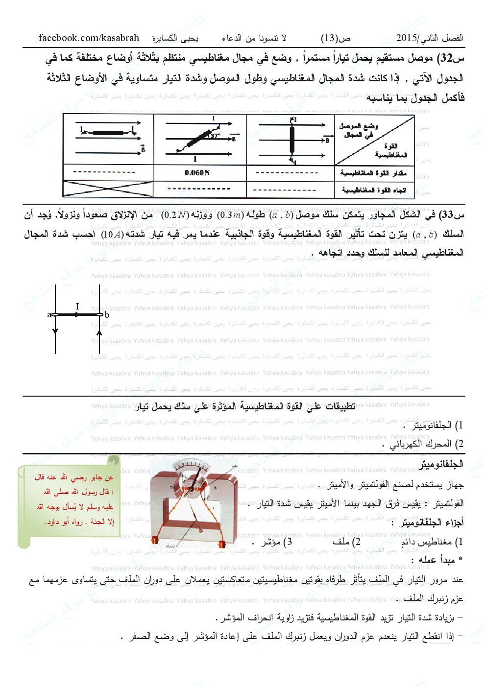 معلومات الملف: الصف الثاني عشرالمتقدم, الفصل الثالث, فيزياء, المغناطيسية . | |||