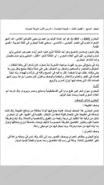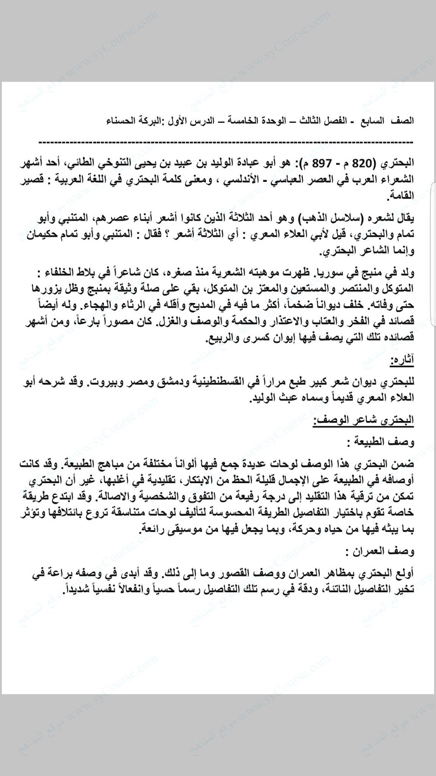 معلومات الملف: الصف السابع, الفصل الثالث, لغة عربية, شرح قصيدة "البركة الحسناء" | |||