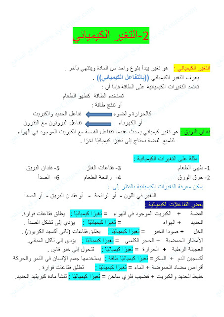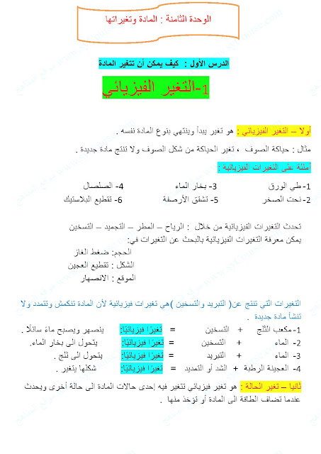 | تلخيص الدرس الأول من الوحدة الثامنة (المادة وتغيراتها). | |||