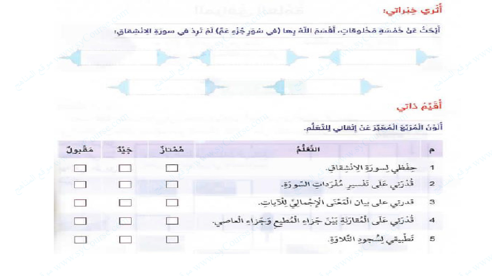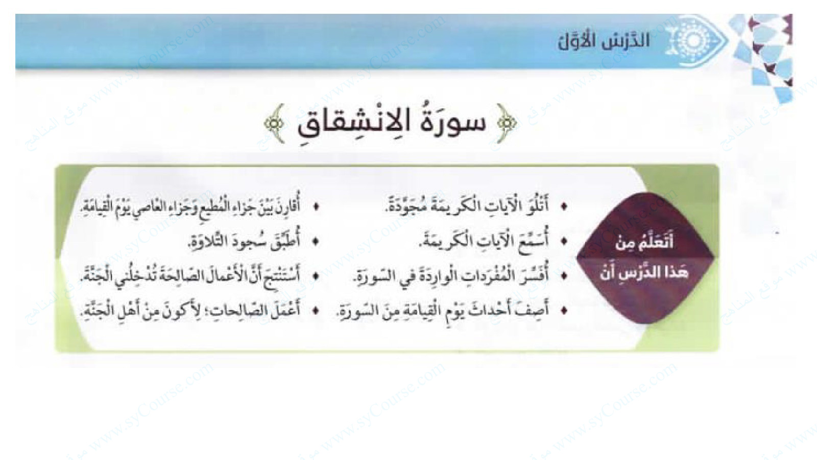 | حل الدرس الأول (سورة الانشقاق) | |||