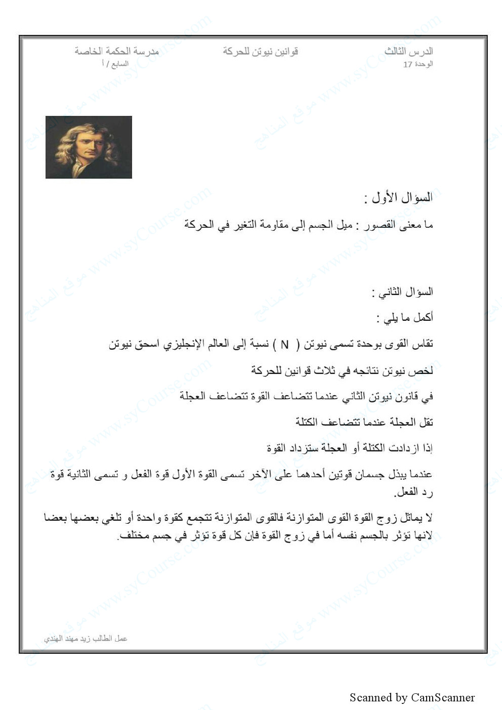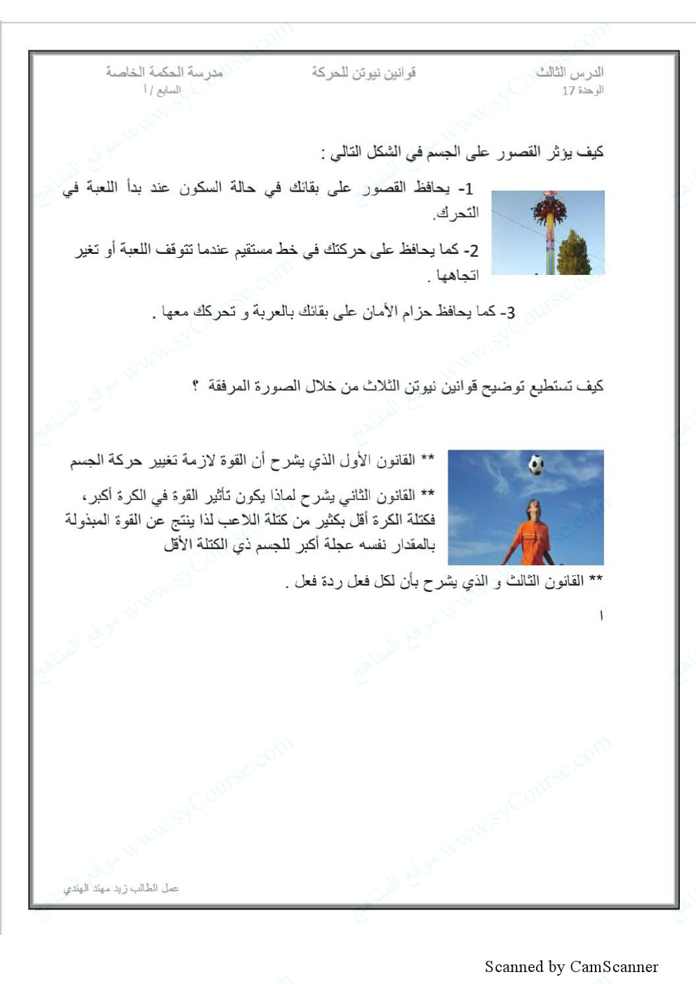 معلومات الملف: الصف السابع, الفصل الثالث, علوم, تلخيص الدرس الثالث (قوانين نيوتين). | |||