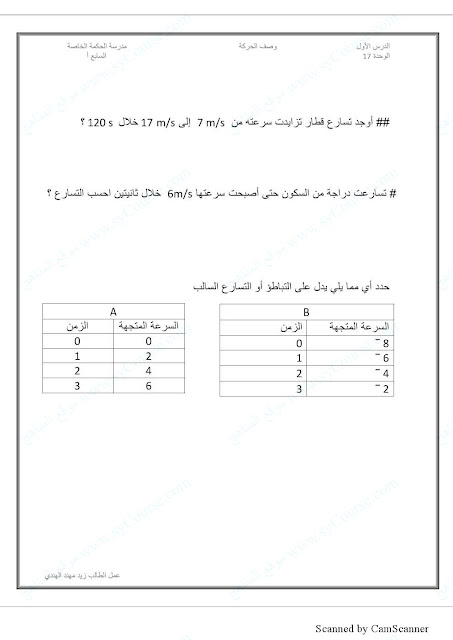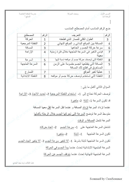معلومات الملف: الصف السابع, الفصل الثالث, علوم, اختبار في درس. (وصف الحركة) | |||
