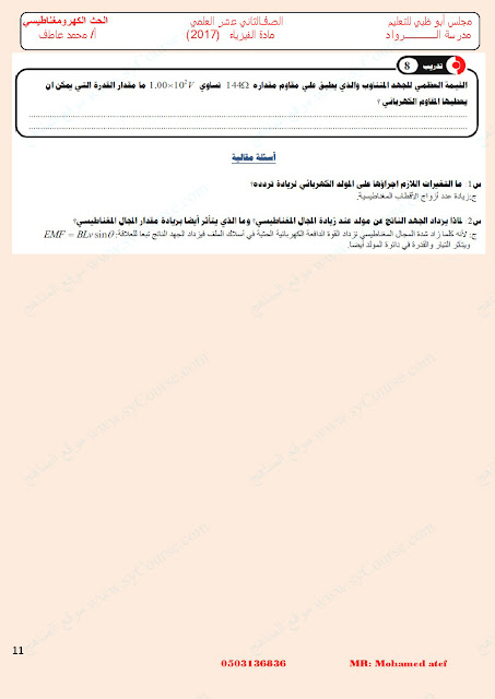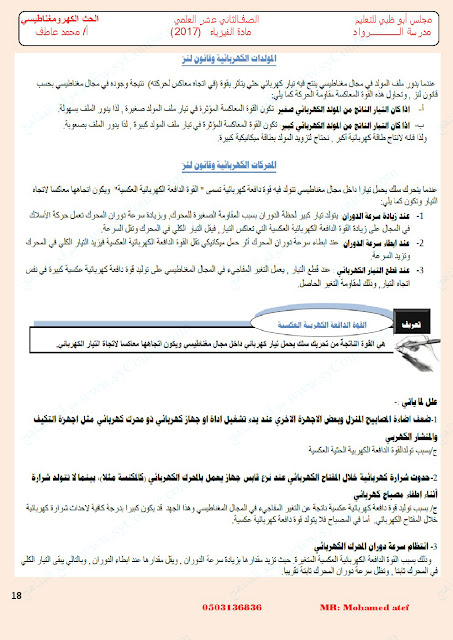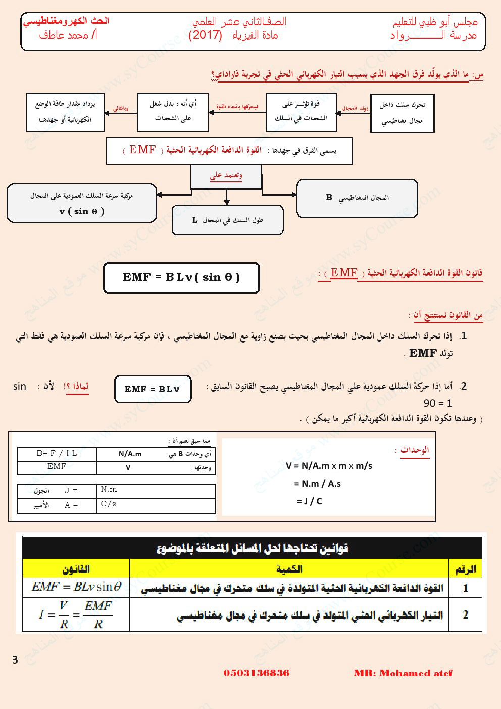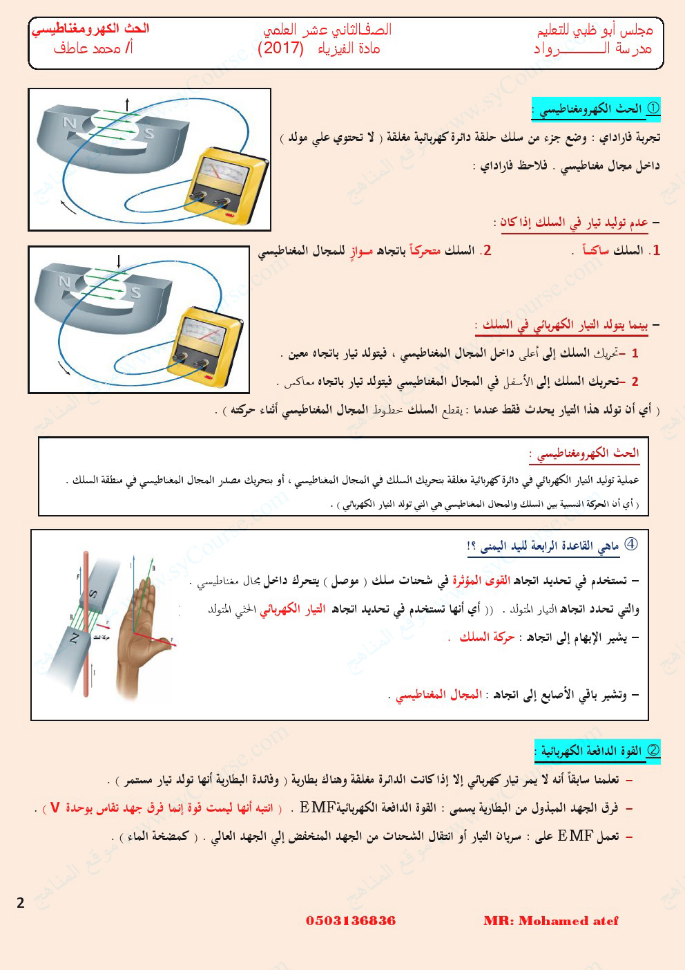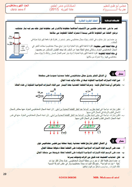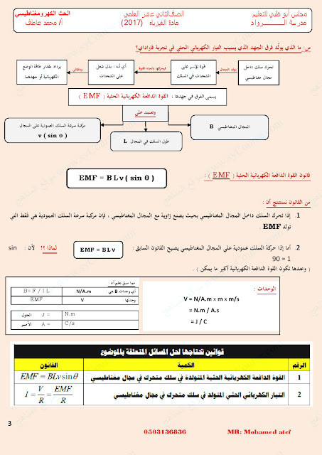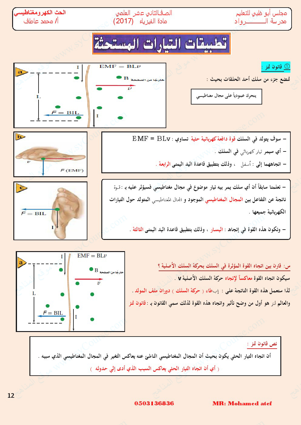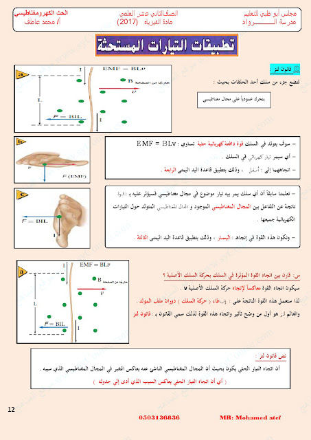 معلومات الملف: الصف الثاني عشر المتقدم, الفصل الثالث, فيزياء, الحث الكهرومغناطيسي(شرح+تمارين). | |||