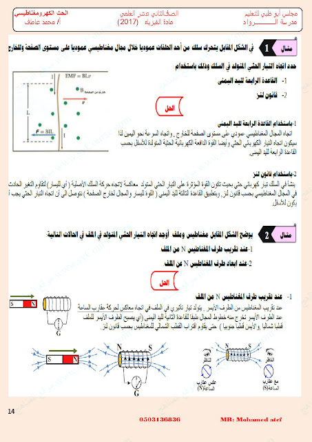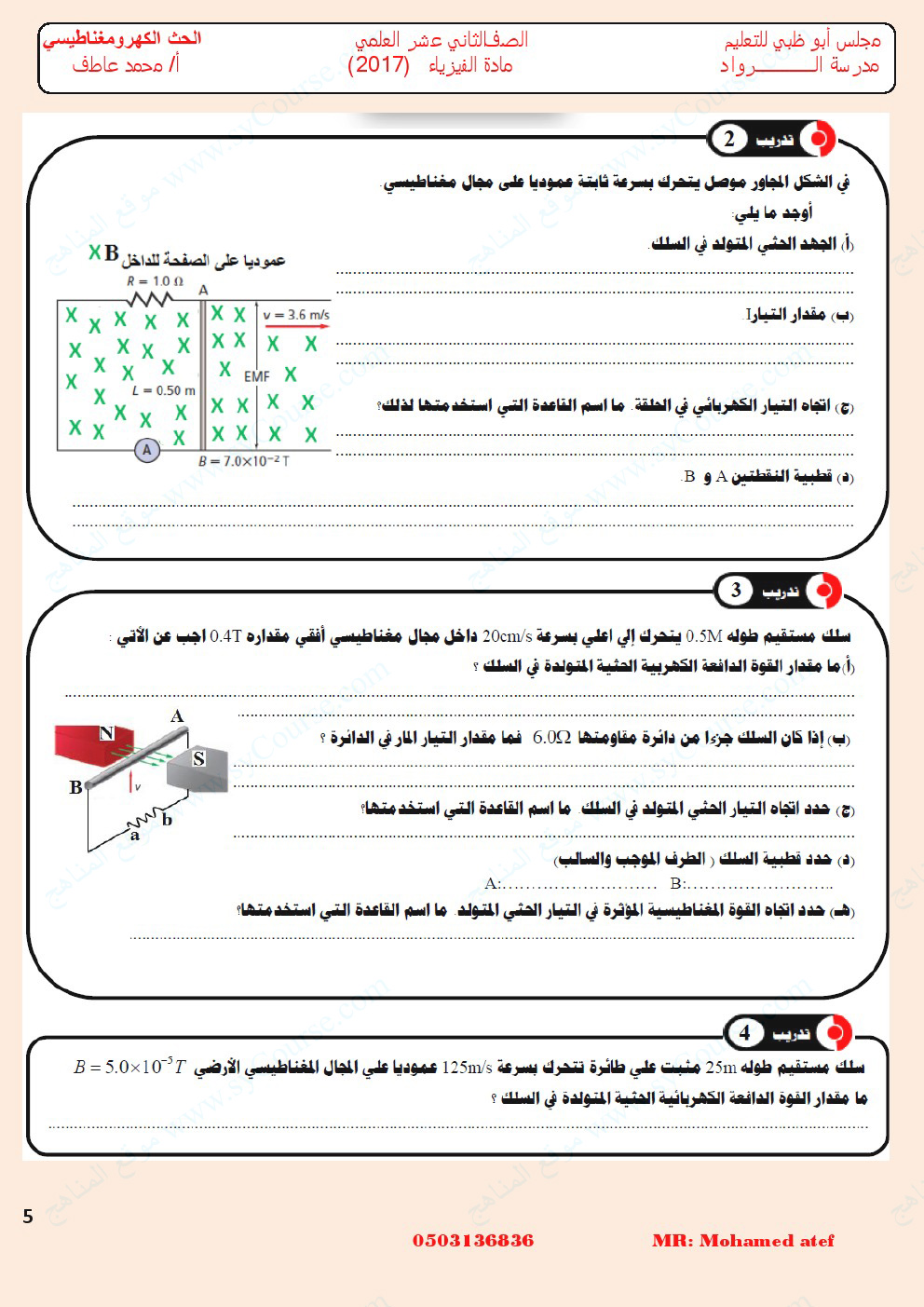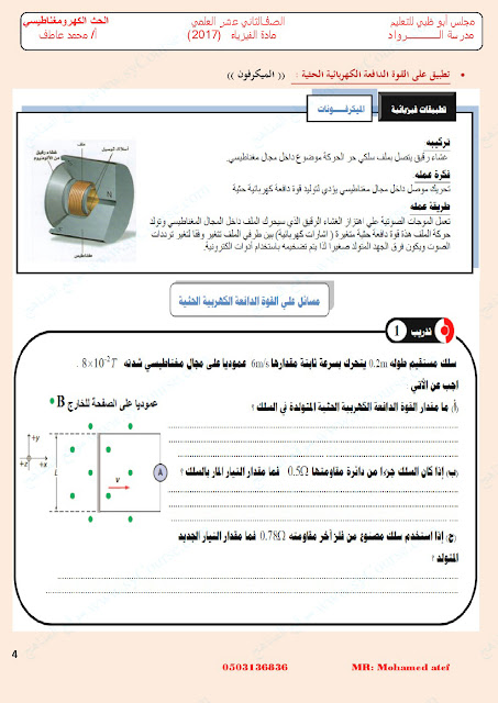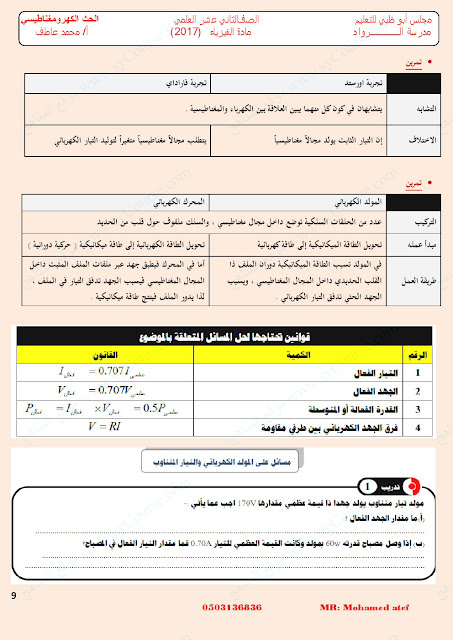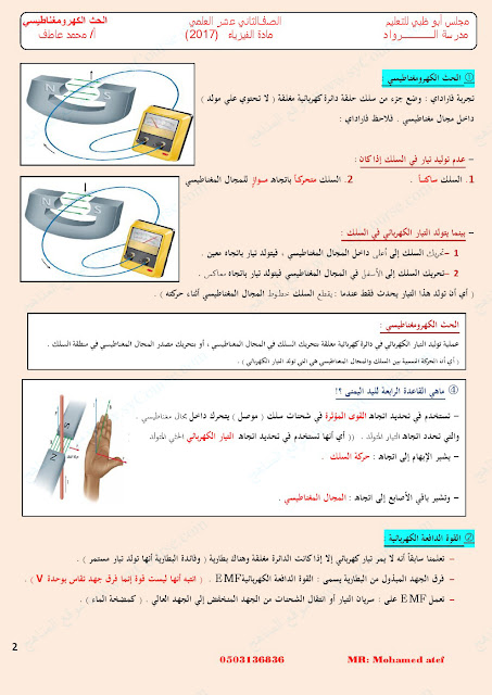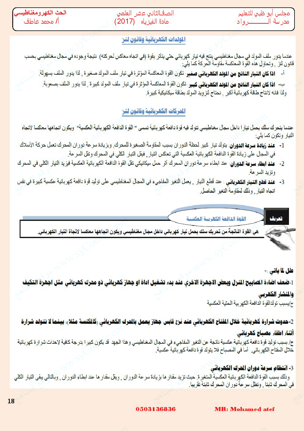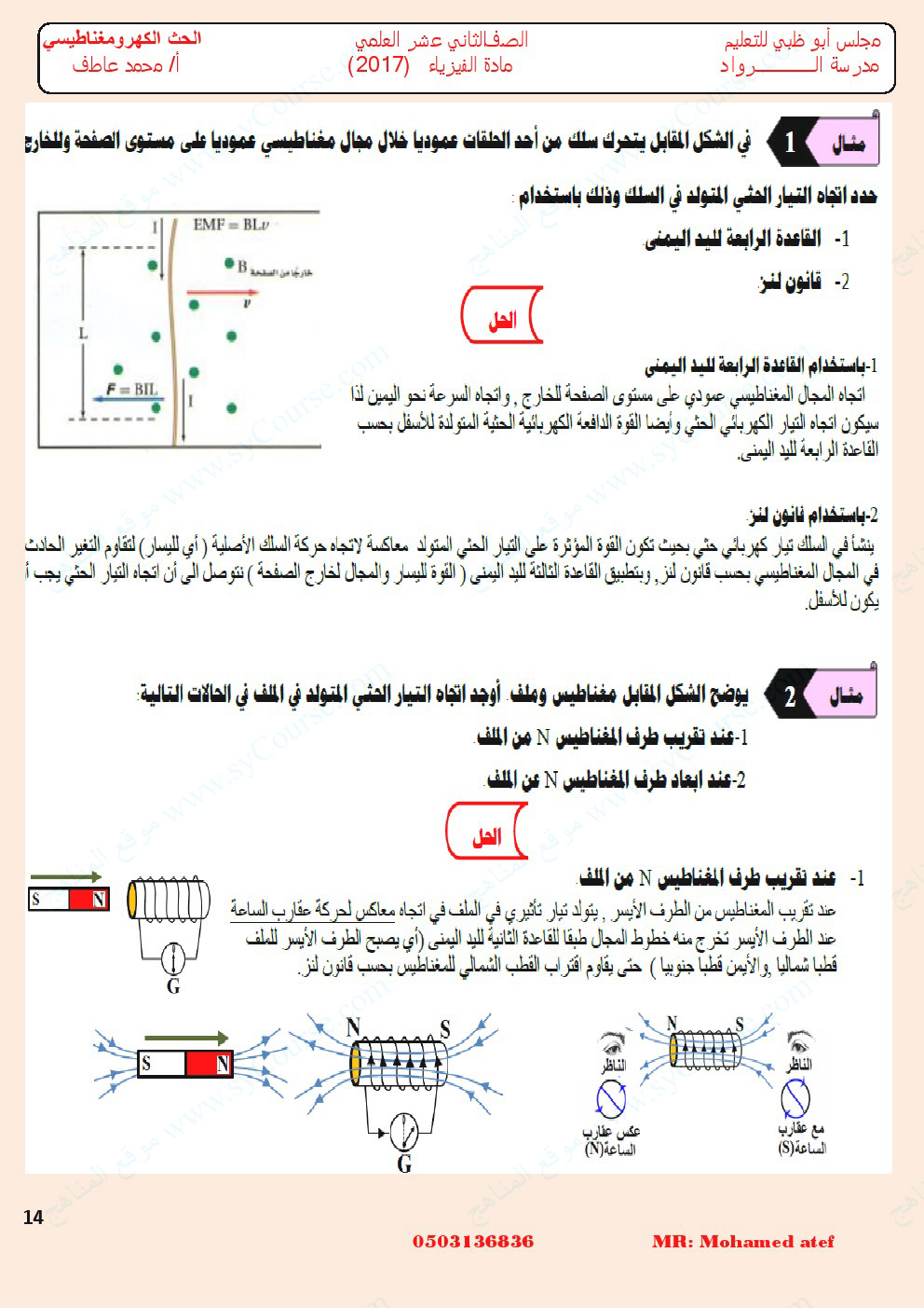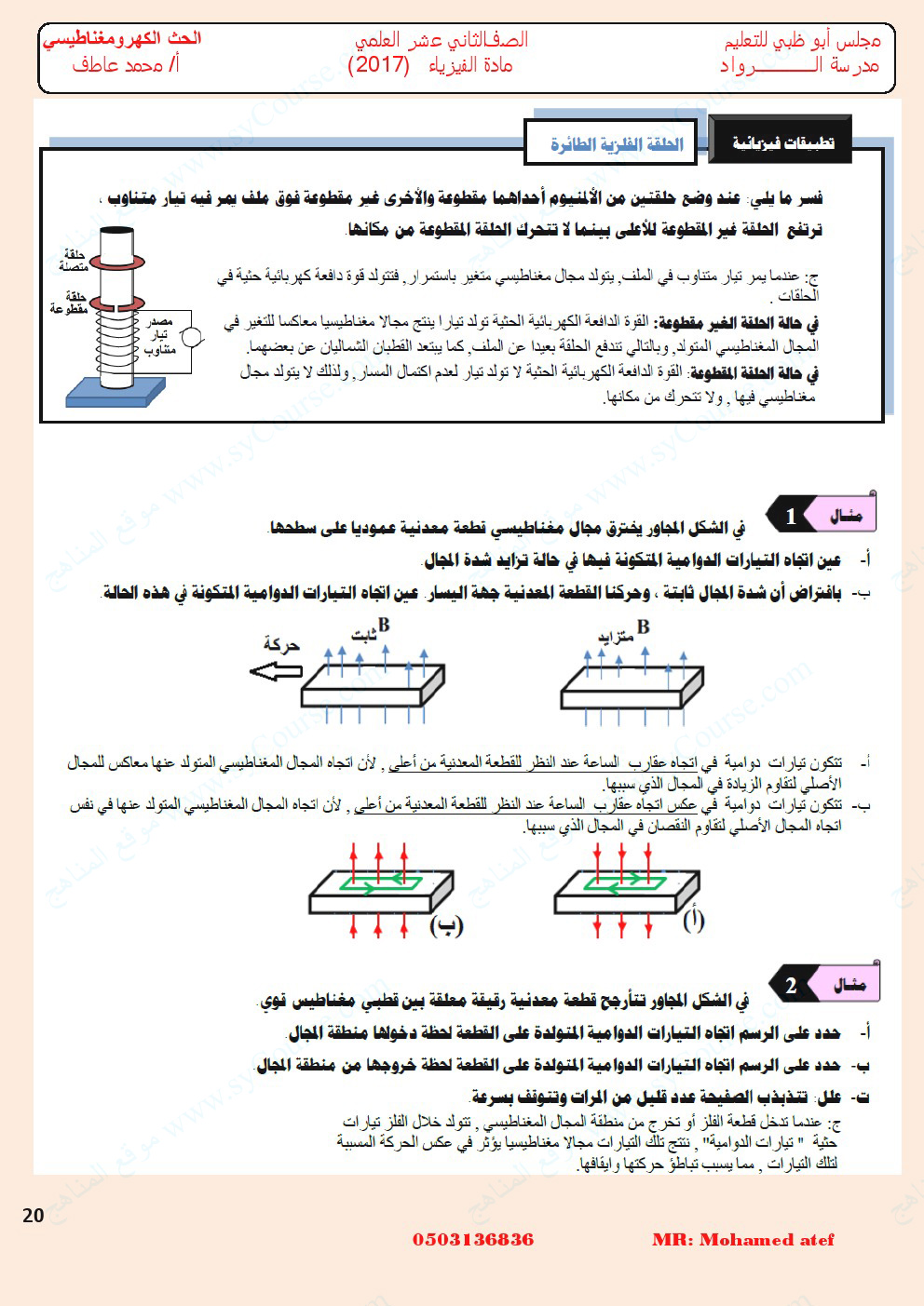 معلومات الملف: الصف الثاني عشر المتقدم, الفصل الثالث, فيزياء, الحث الكهرومغناطيسي(شرح+تمارين). | |||