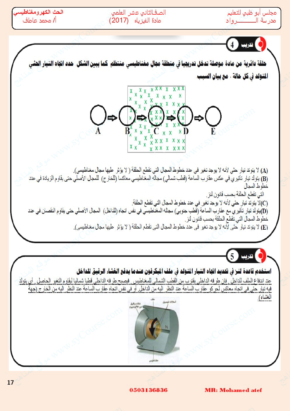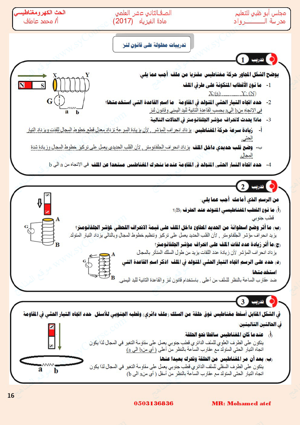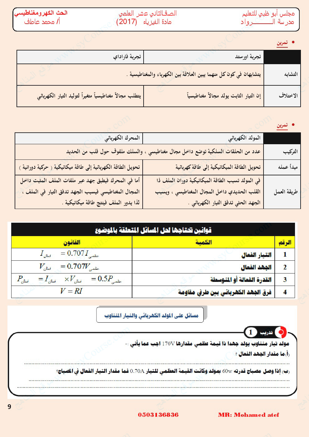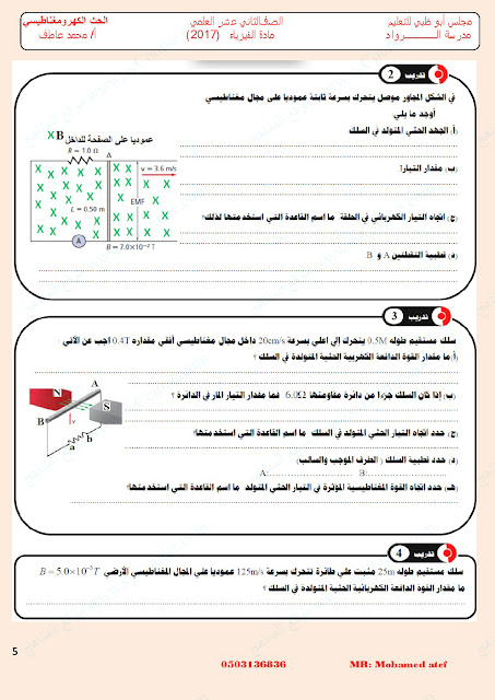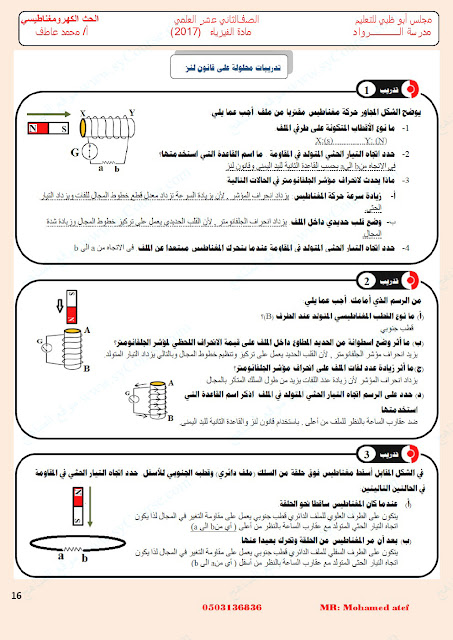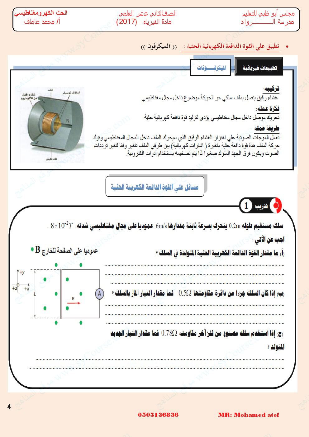 معلومات الملف: الصف الثاني عشر المتقدم, الفصل الثالث, فيزياء, الحث الكهرومغناطيسي(شرح+تمارين). | |||