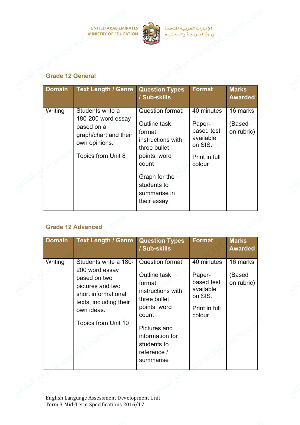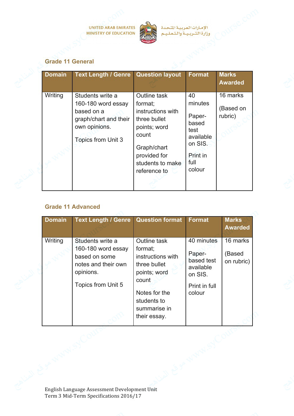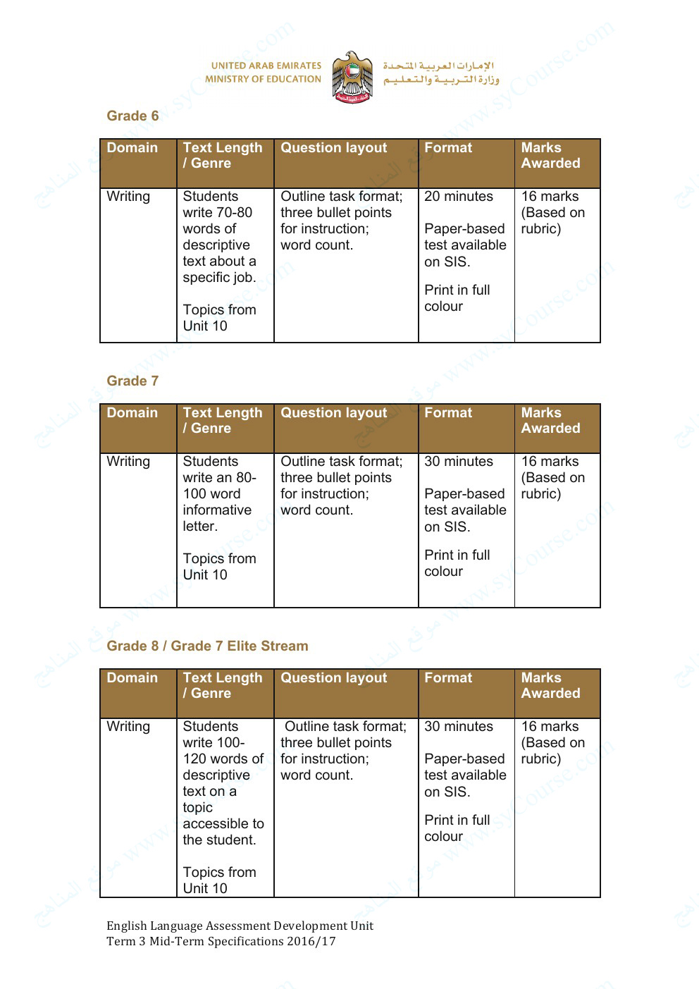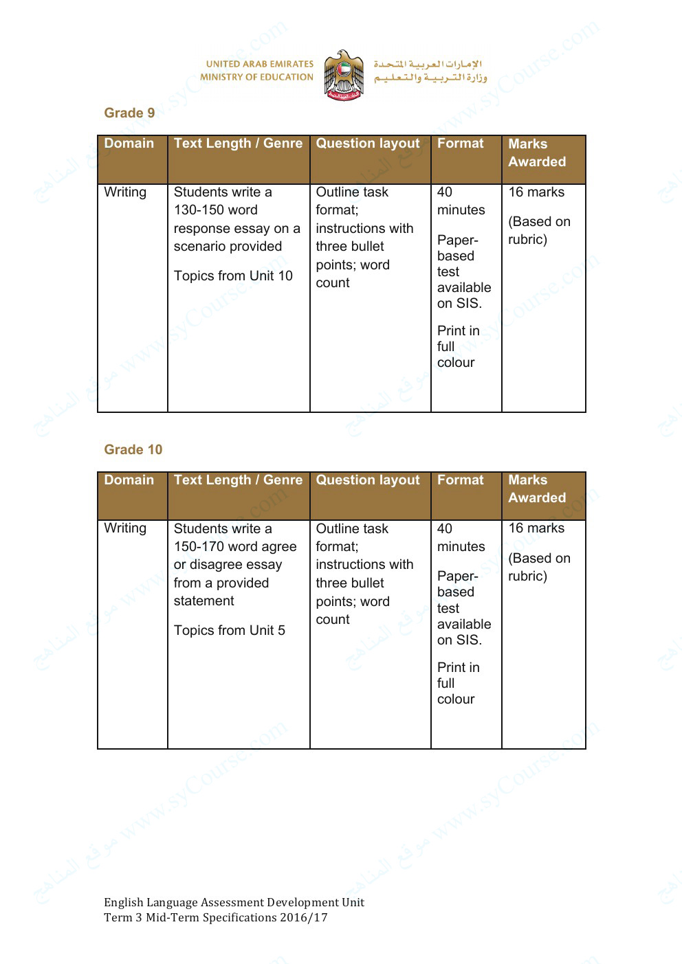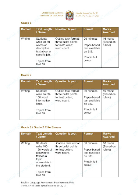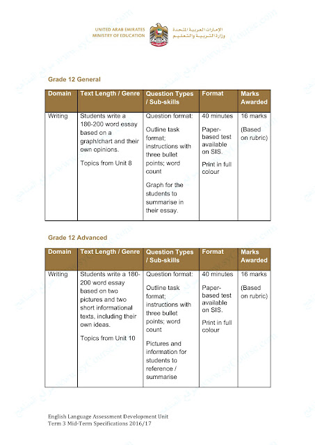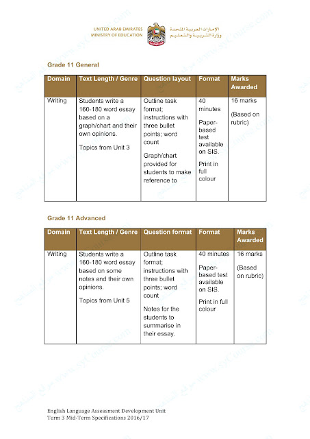 15. الصف الرابع, لغة انجليزية, مواصفات الاختبار النهائي للفصل الأول (الهيكل الوزاري)