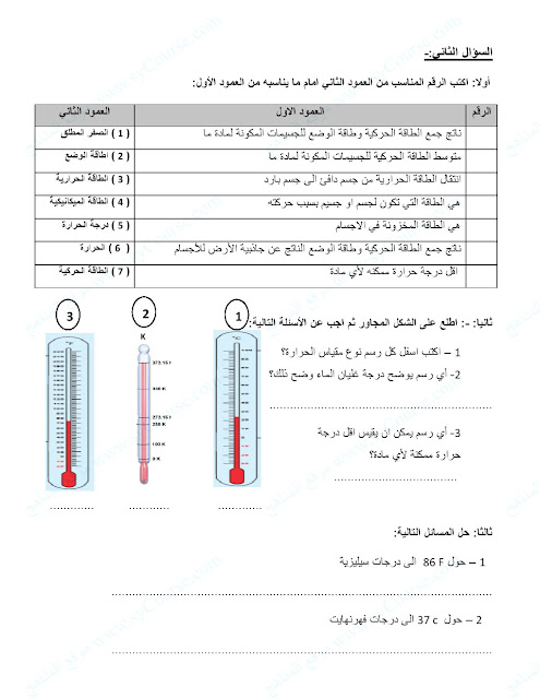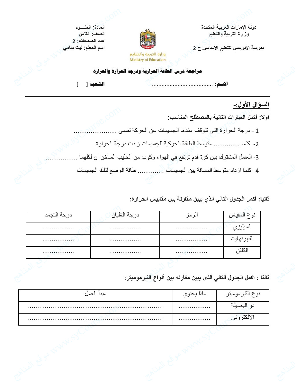 معلومات الملف: الصف الثامن, الفصل الثالث, علوم, ورقة عمل. (الطاقة الحرارية ودرجة الحرارة) | |||