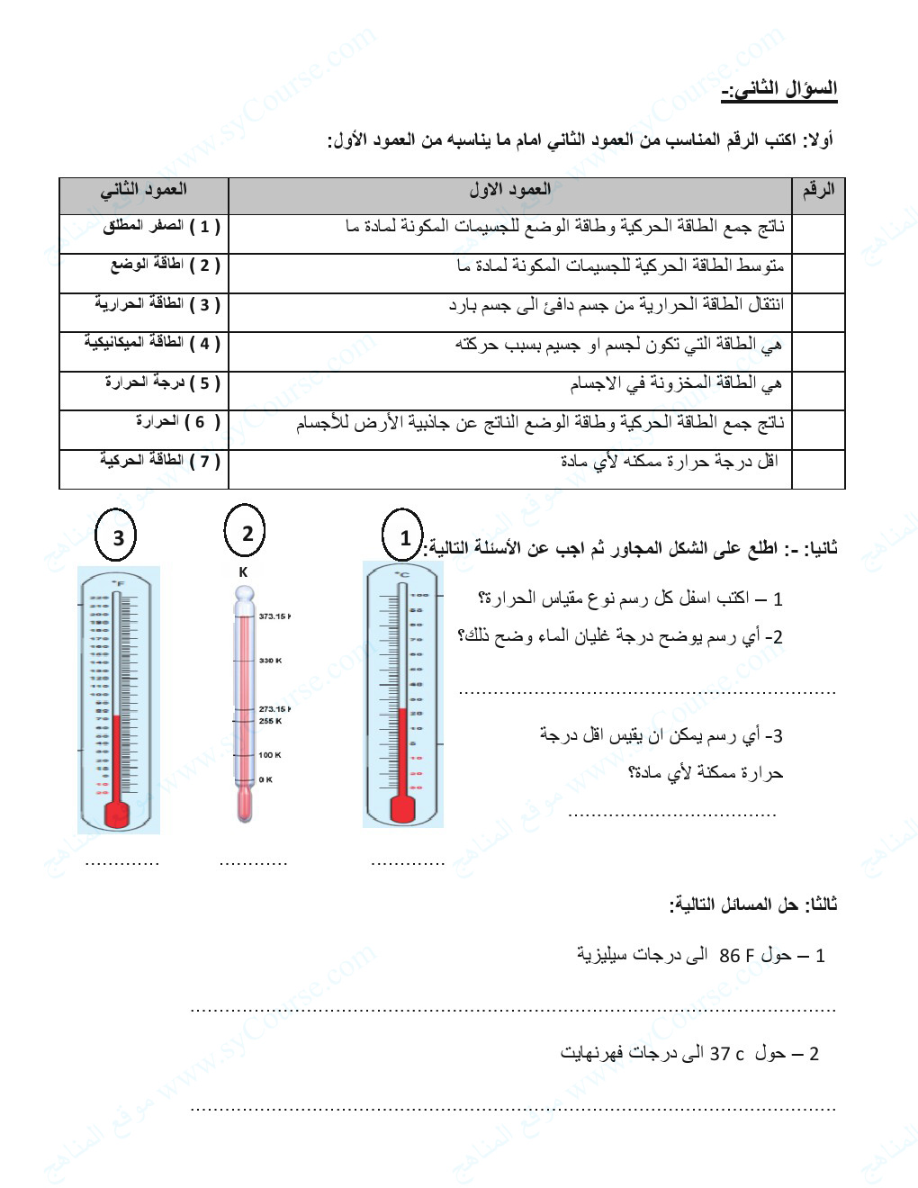 | ورقة عمل. (الطاقة الحرارية ودرجة الحرارة) | |||