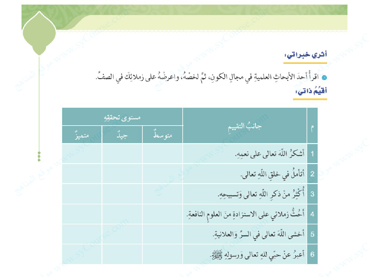 | المادة: تربية اسلامية | |||