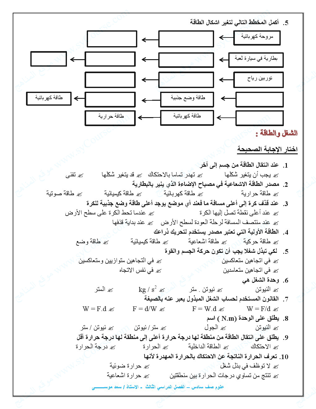 اضغط هنا لتحميل وعرض ( نموذج امتحاني للطاقة والشغل والالات ) |