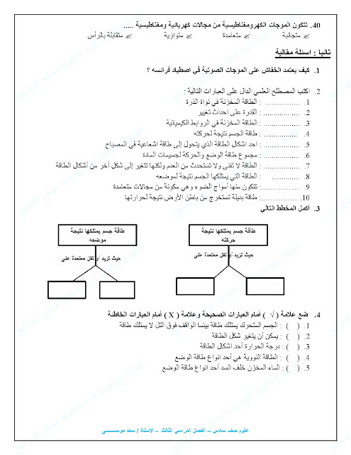 الصف السادس, الفصل الثالث, علوم, نموذج امتحاني للطاقة والشغل والالات للتحميل اتبع الرابط التالي: http://aefiles.website/do.php?id=450">http://aefiles.website/do.php?id=450