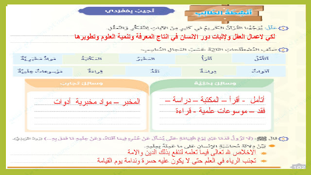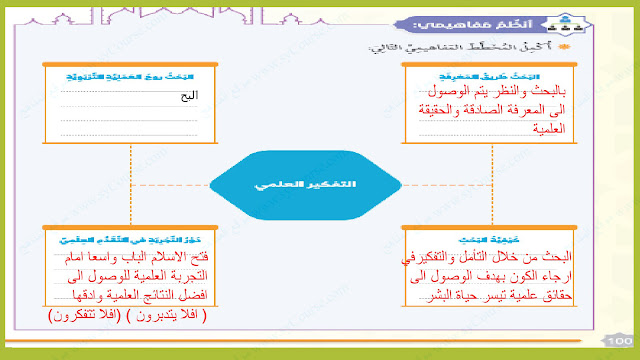 معلومات الملف: الصف السادس, الفصل الثالث, تربية اسلامية, حل درس التفكير العلمي. | |||