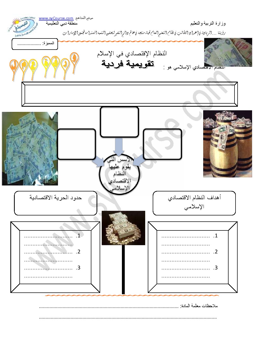 معلومات الملف: الصف الثاني عشر, الفصل الثالث, تربية اسلامية, ورقة عمل .(النظام الاقتصادي في الاسلام) | |||