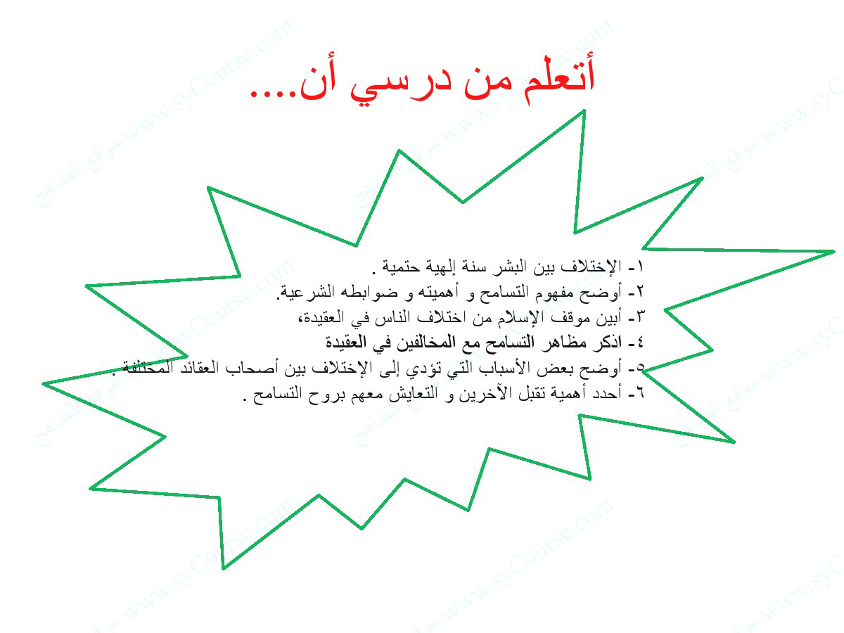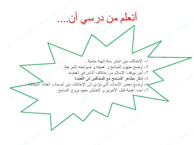 | ملخص لدرس (.التسامح في العقيدة) | |||