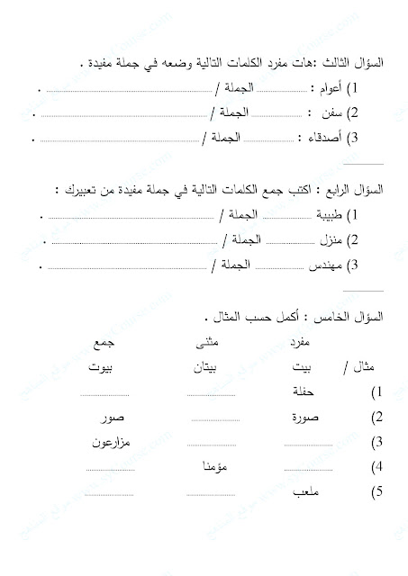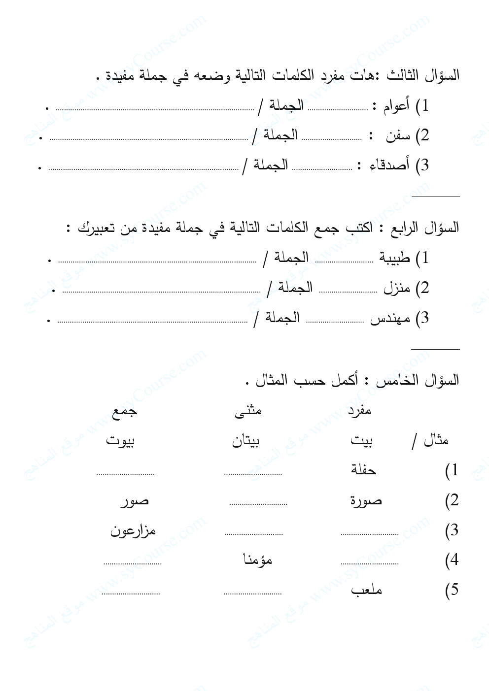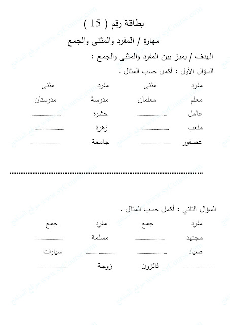 ورقة عمل في (المفرد والمثنى والجمع). | |||