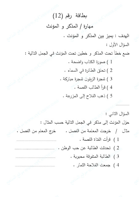 اضغط هنا لتحميل وعرض ( أوراق عمل المذكر والمؤنث. ) |