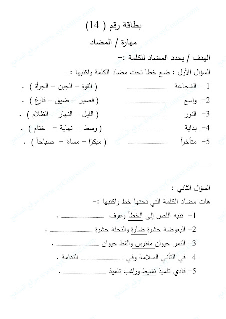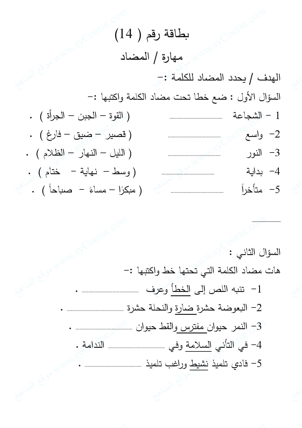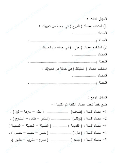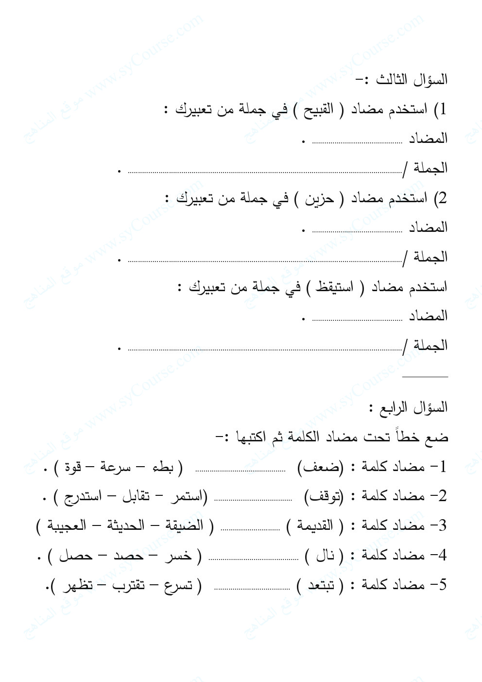 معلومات الملف: الصف الثالث, الفصل الثالث, لغة عربية, أوراق عمل المضاد. | |||
