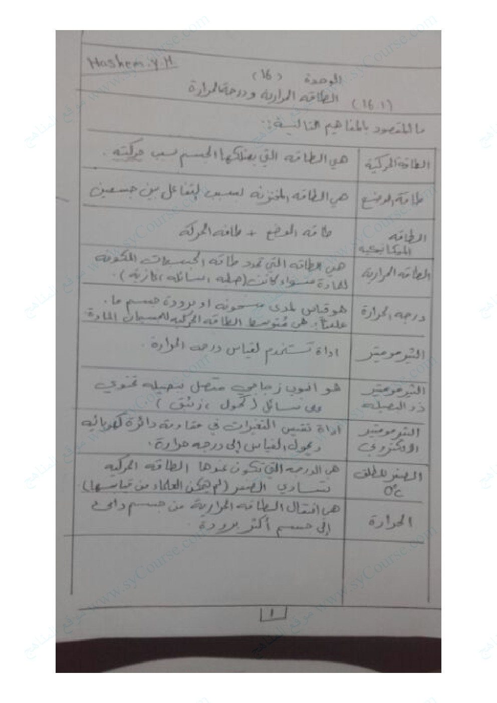 ملخص شامل للوحدة 16بخط اليد الطاقة الحرارية | |||