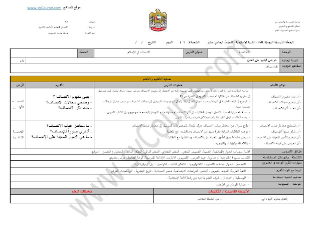 معلومات الملف: الصف الحادي عشر, الفصل الثالث, تربية اسلامية, تحضير درس الانصاف. | |||