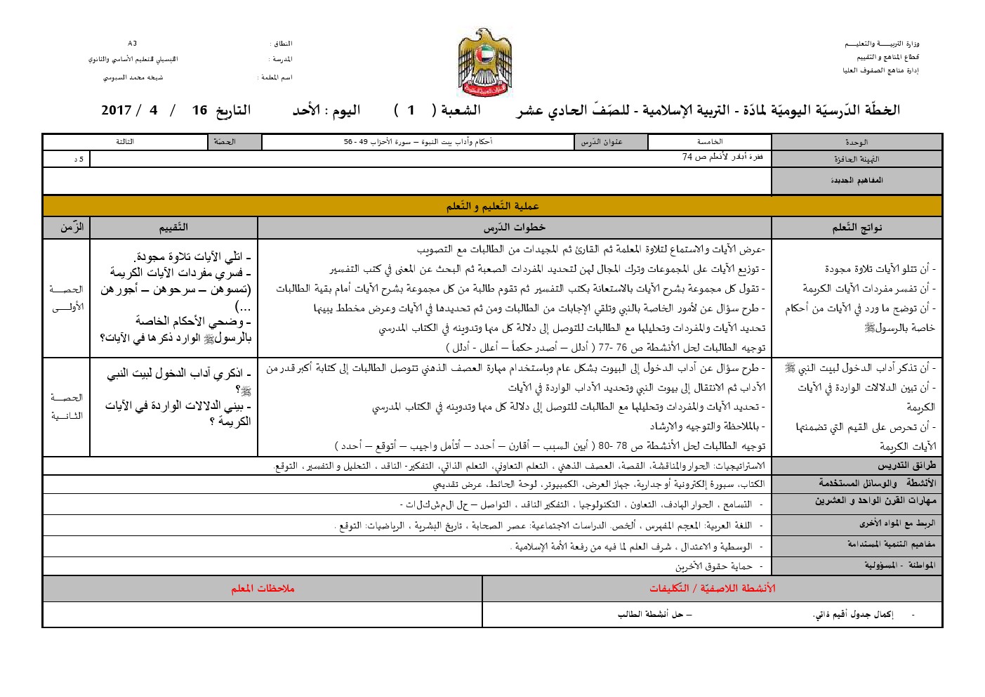 معلومات الملف: الصف الحادي عشر, الفصل الثالث, تربية اسلامية, آداب واحكام بيت النبوة. | |||