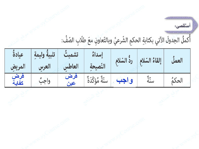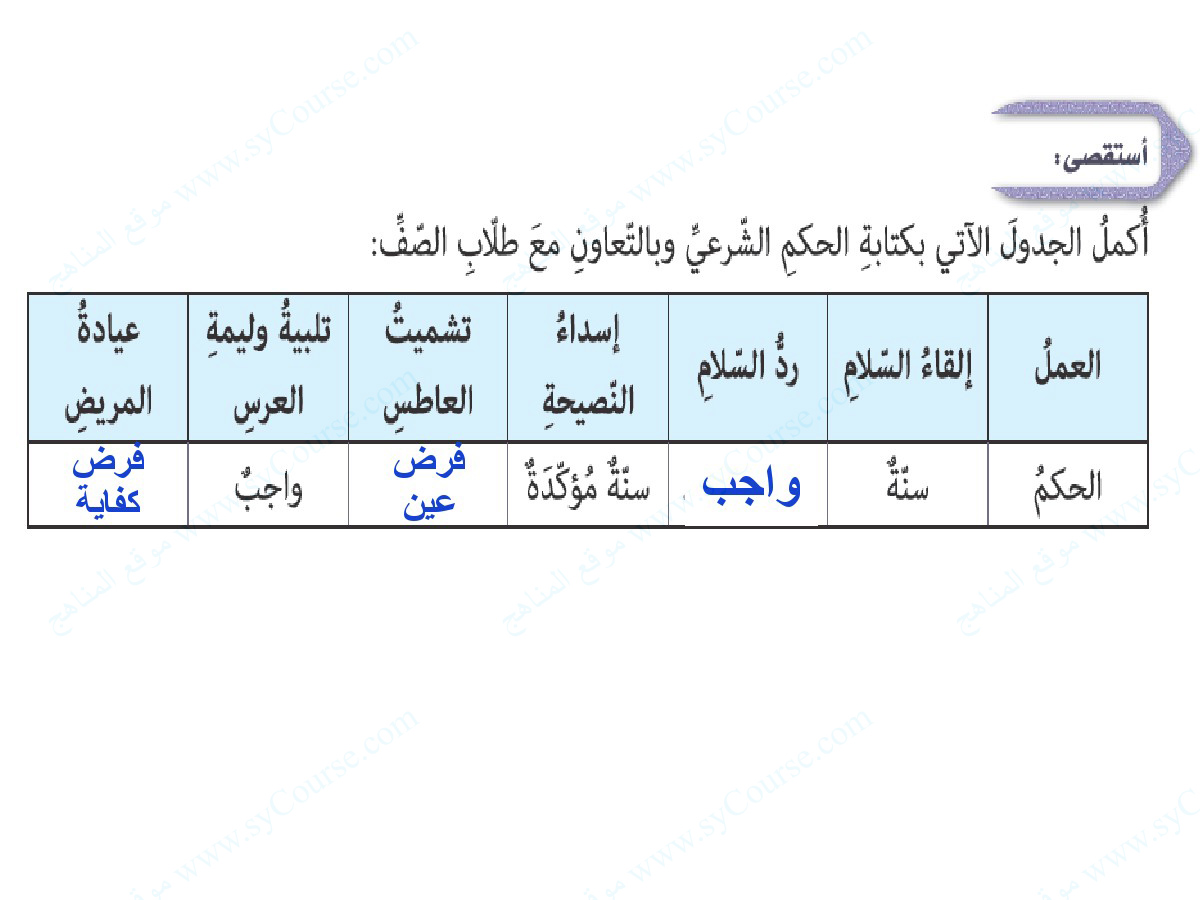 | المادة: تربية اسلامية | |||