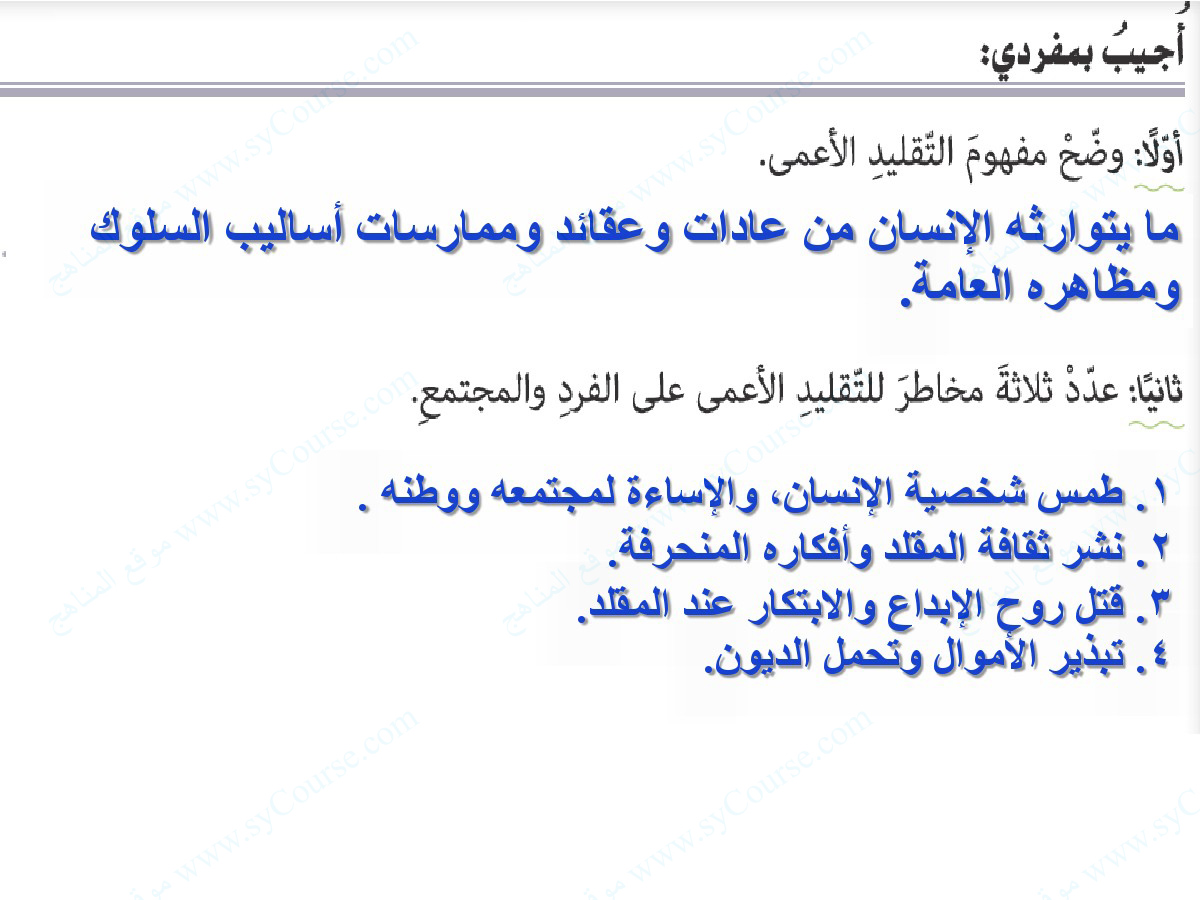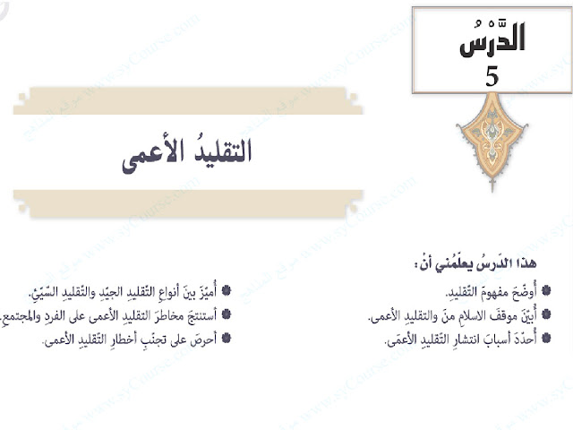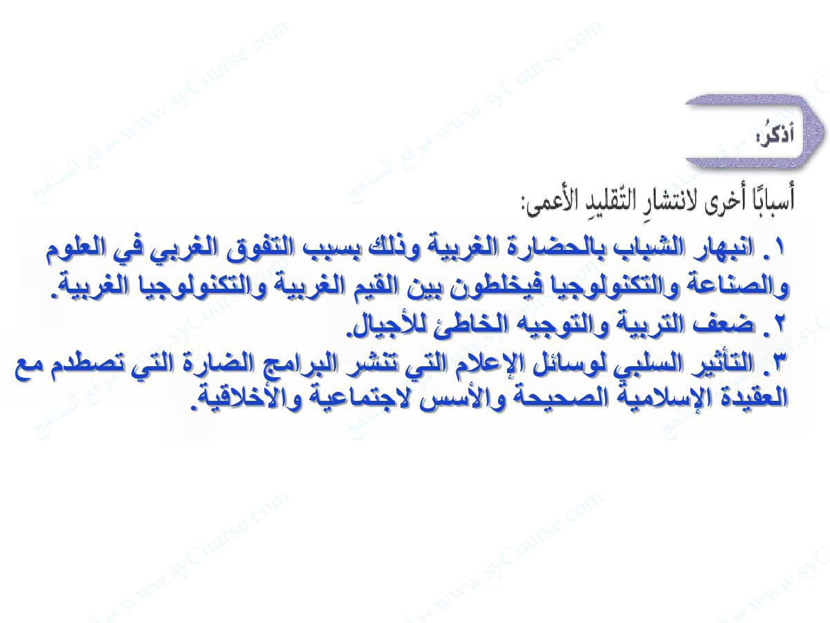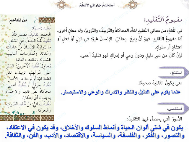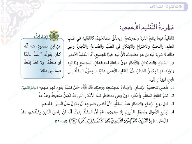 معلومات الملف: الصف التاسع, الفصل الثالث, تربية اسلامية, درس (التقليد الأعمى) | |||