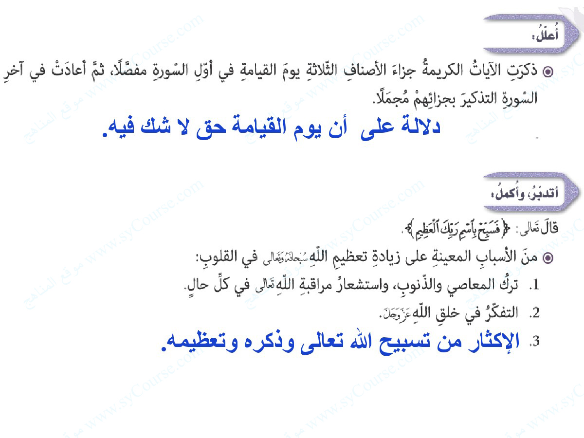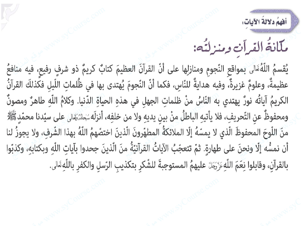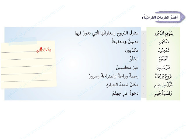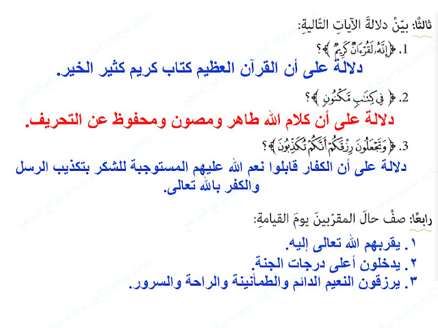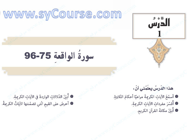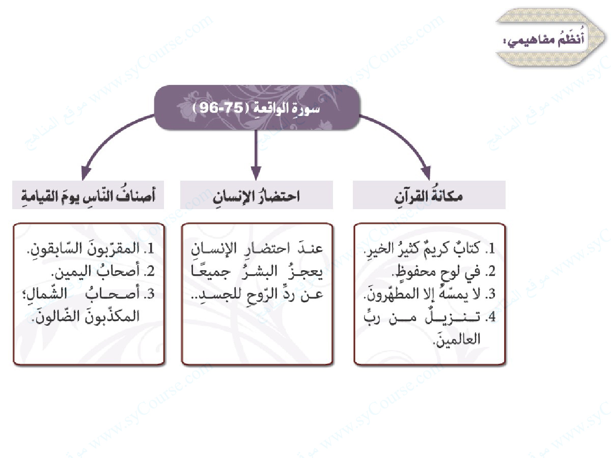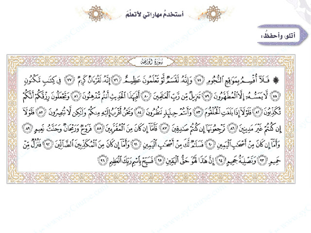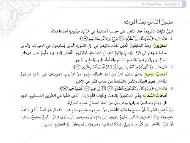 معلومات الملف: الصف التاسع, الفصل الثالث, تربية اسلامية, درس (سورة الواقعة 75-96) | |||