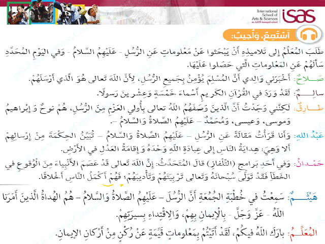 معلومات الملف: الصف الثالث, الفصل الثالث, تربية اسلامية , درس الايمان بالرسل | |||