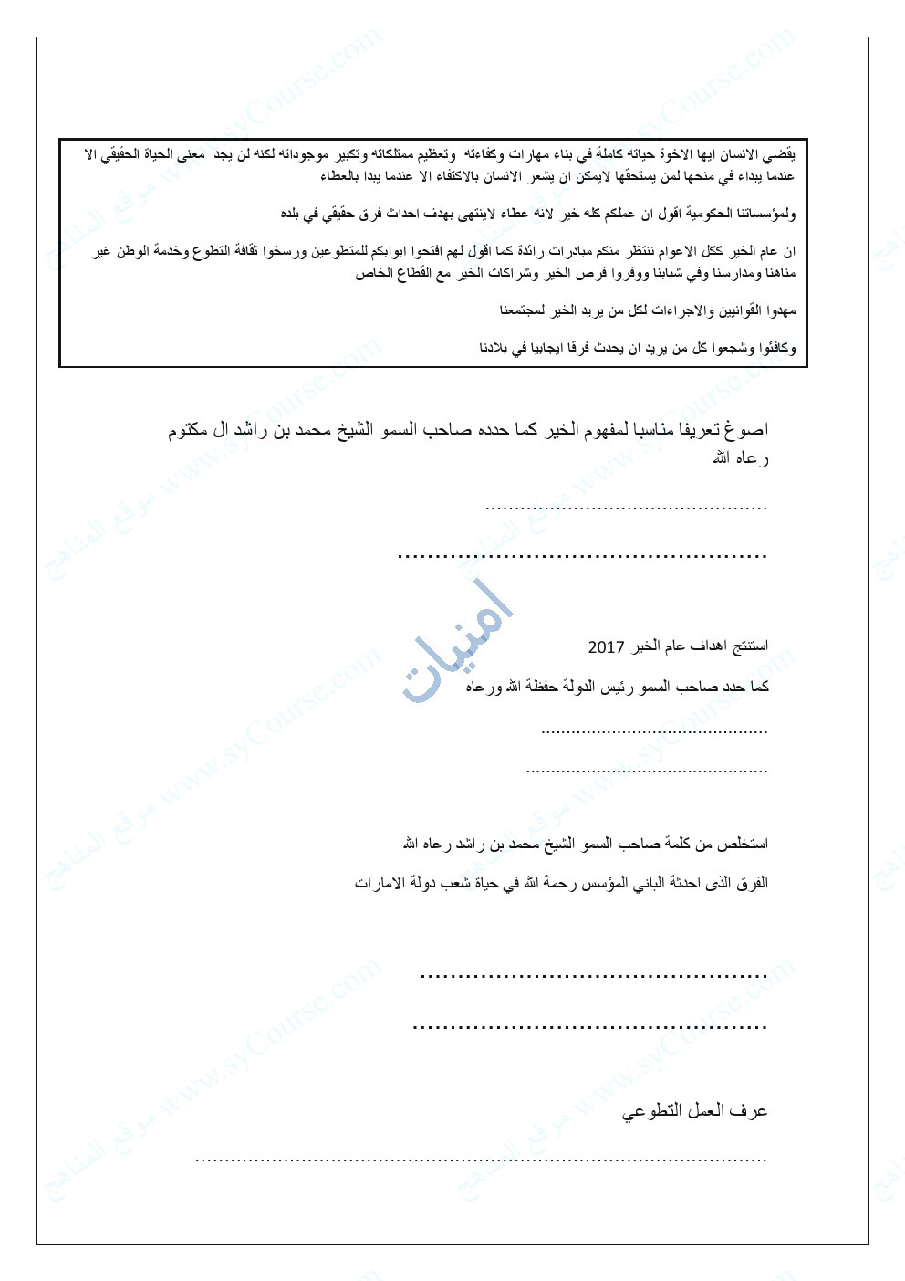 | تنويه: المناهج الإماراتية هو موقع مجاني وغير رسمي ولا يتطلب اشتراك لتحميل الملفات، لذلك يرجى عدم دفع أي مبلغ أو الاشتراك من أجل تحميل الملفات. | |