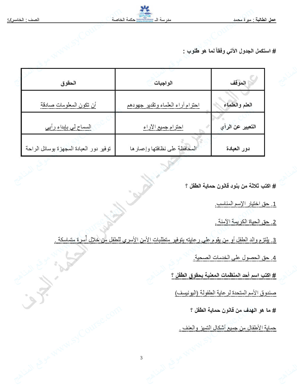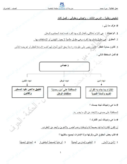 | اضغط هنا لتحميل وعرض ( أوراق عمل الدرس الثالث مع الحل (واجباتي وحقوقي). ) | |||