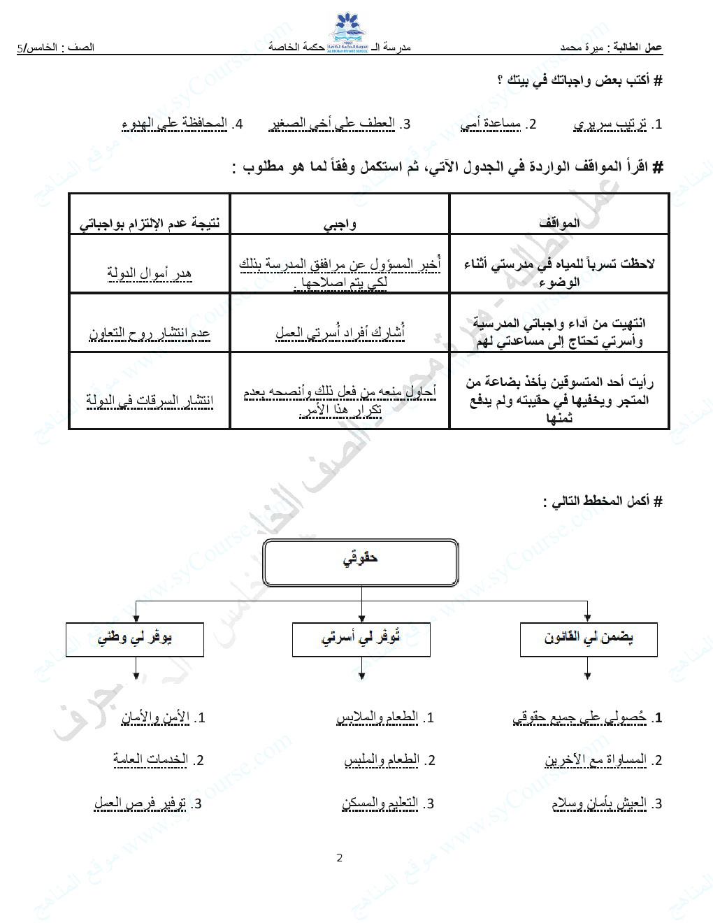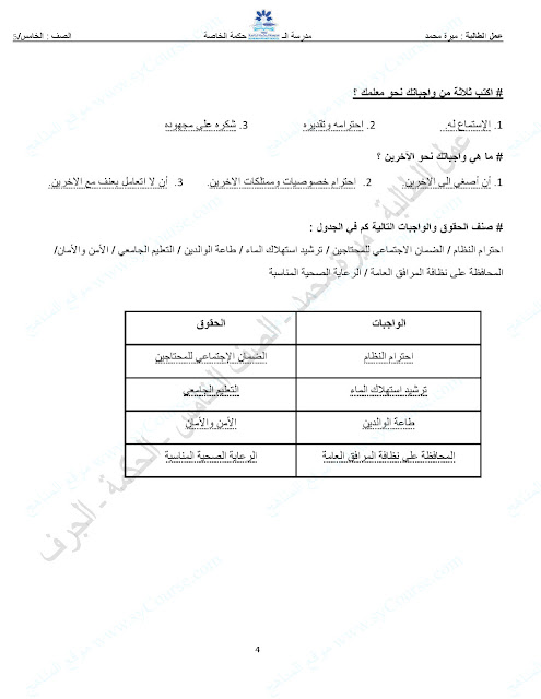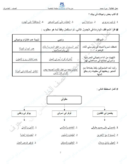 أوراق عمل الدرس الثالث مع الحل (واجباتي وحقوقي). | |||