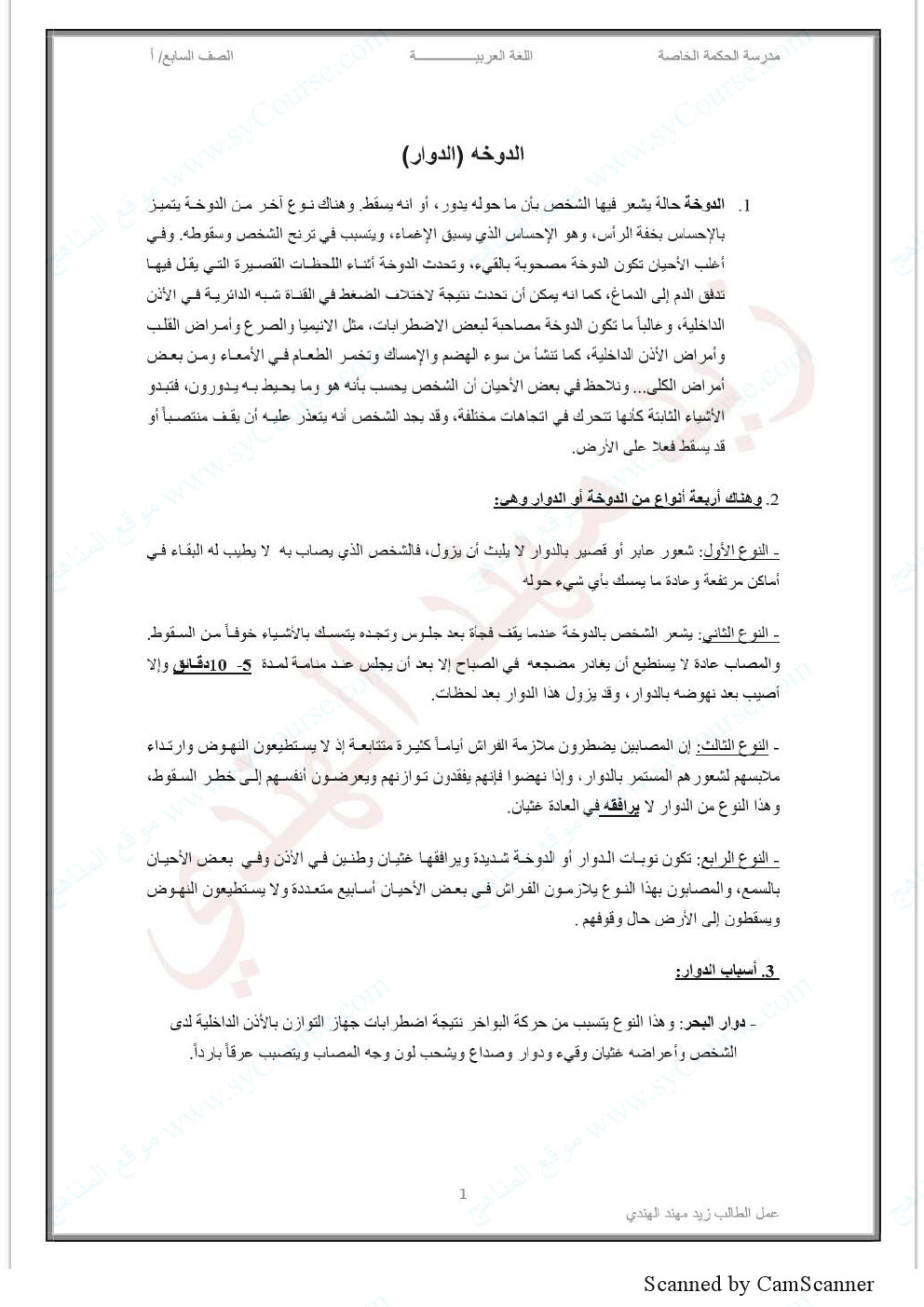 | اضغط هنا لتحميل وعرض ( الدوخة الدوار شرح و أوراق عمل ) | |||