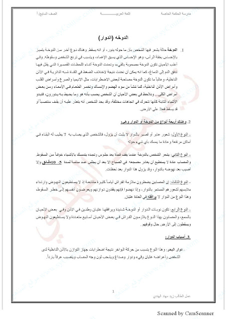 معلومات الملف: الصف السابع, الفصل الثالث, لغة عربية, الدوخة -الدوار (شرح + أوراق عمل ) | |||
