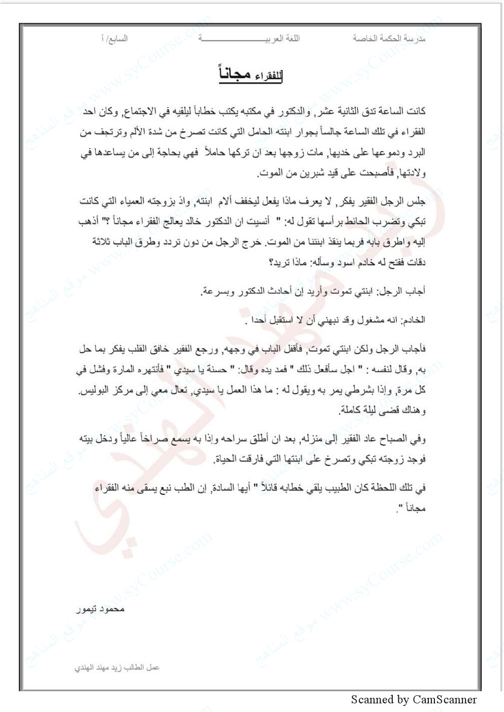 معلومات الملف: الصف السابع, الفصل الثالث, لغة عربية, درس للفقراء مجاناً (تدريب) | ||