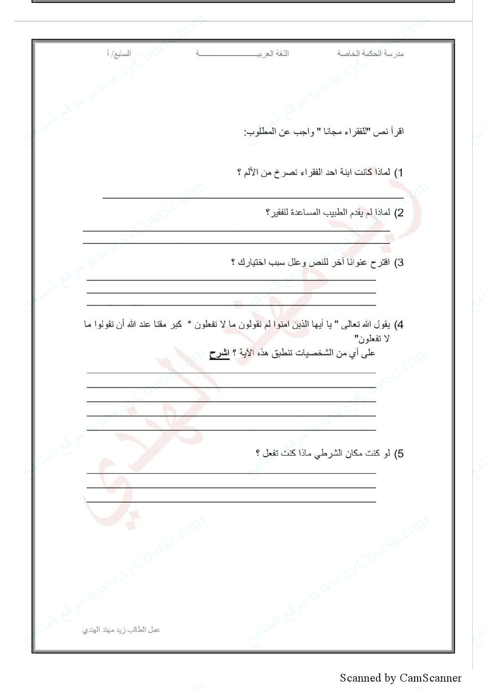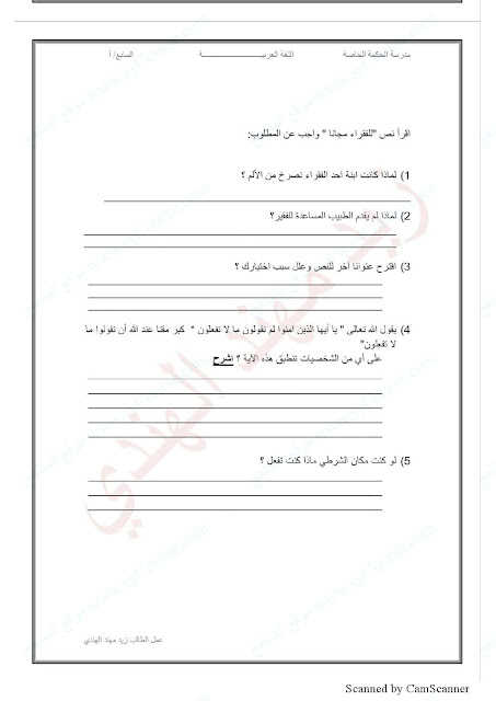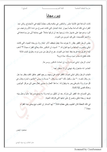 الصف السابع, الفصل الثالث, لغة عربية, درس للفقراء مجاناً (تدريب) للتحميل اتبع الرابط التالي من فضلك: