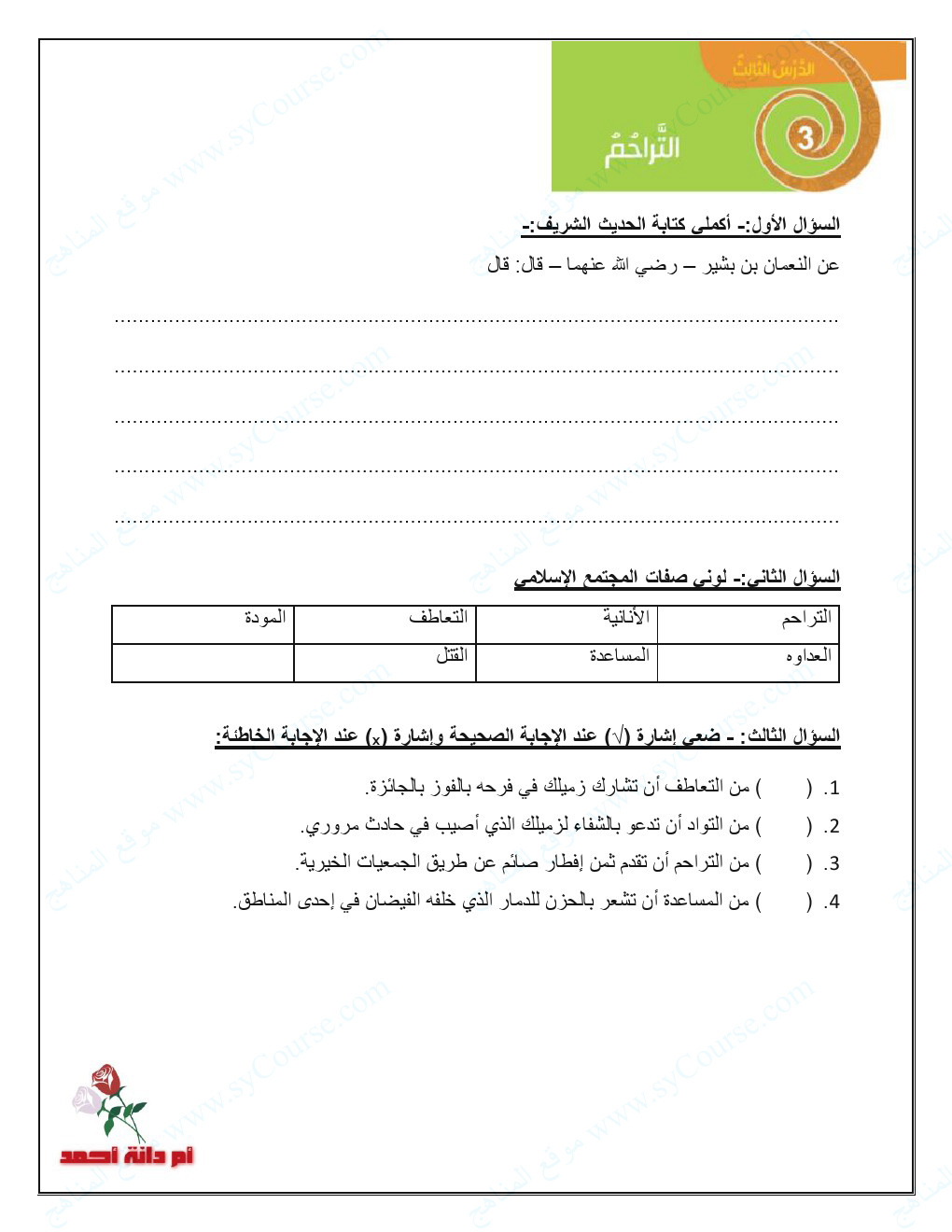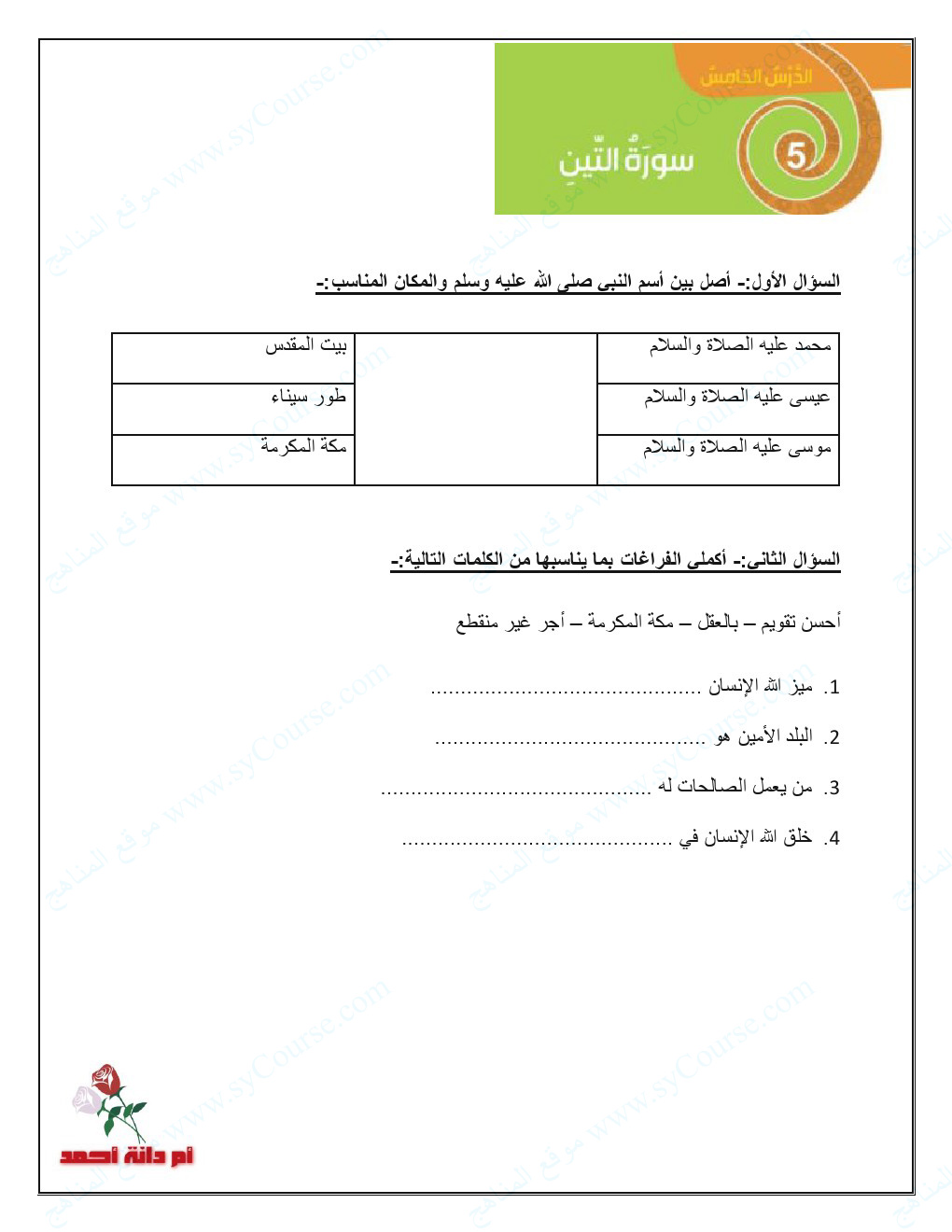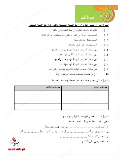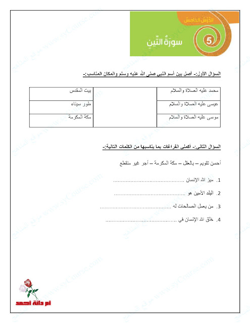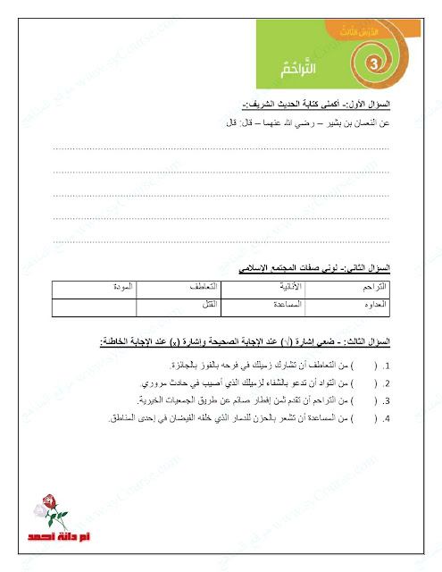 معلومات الملف: الصف الثالث, الفصل الثالث, تربية اسلامية, أوراق عمل أول 5 دروس. | |||