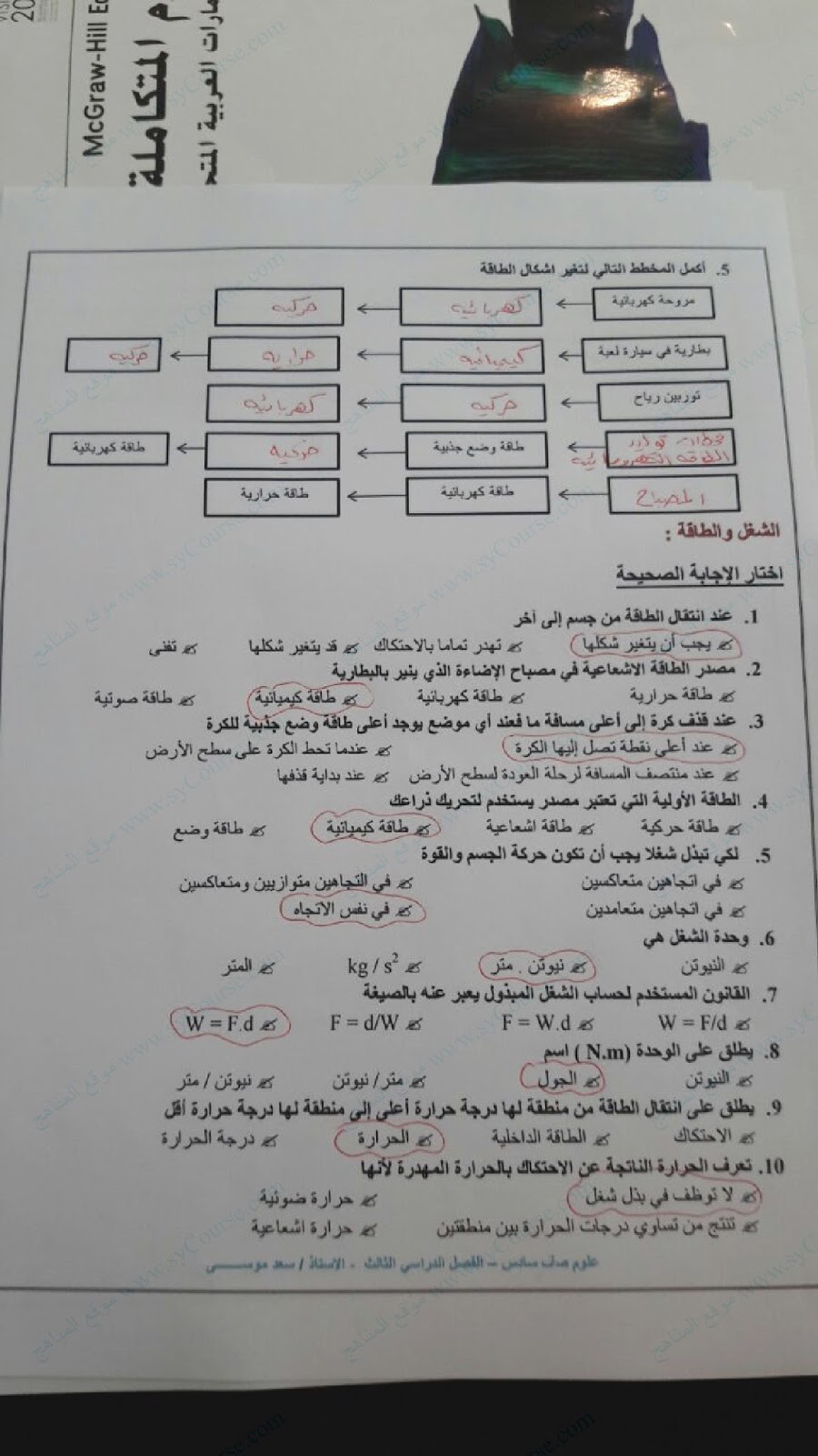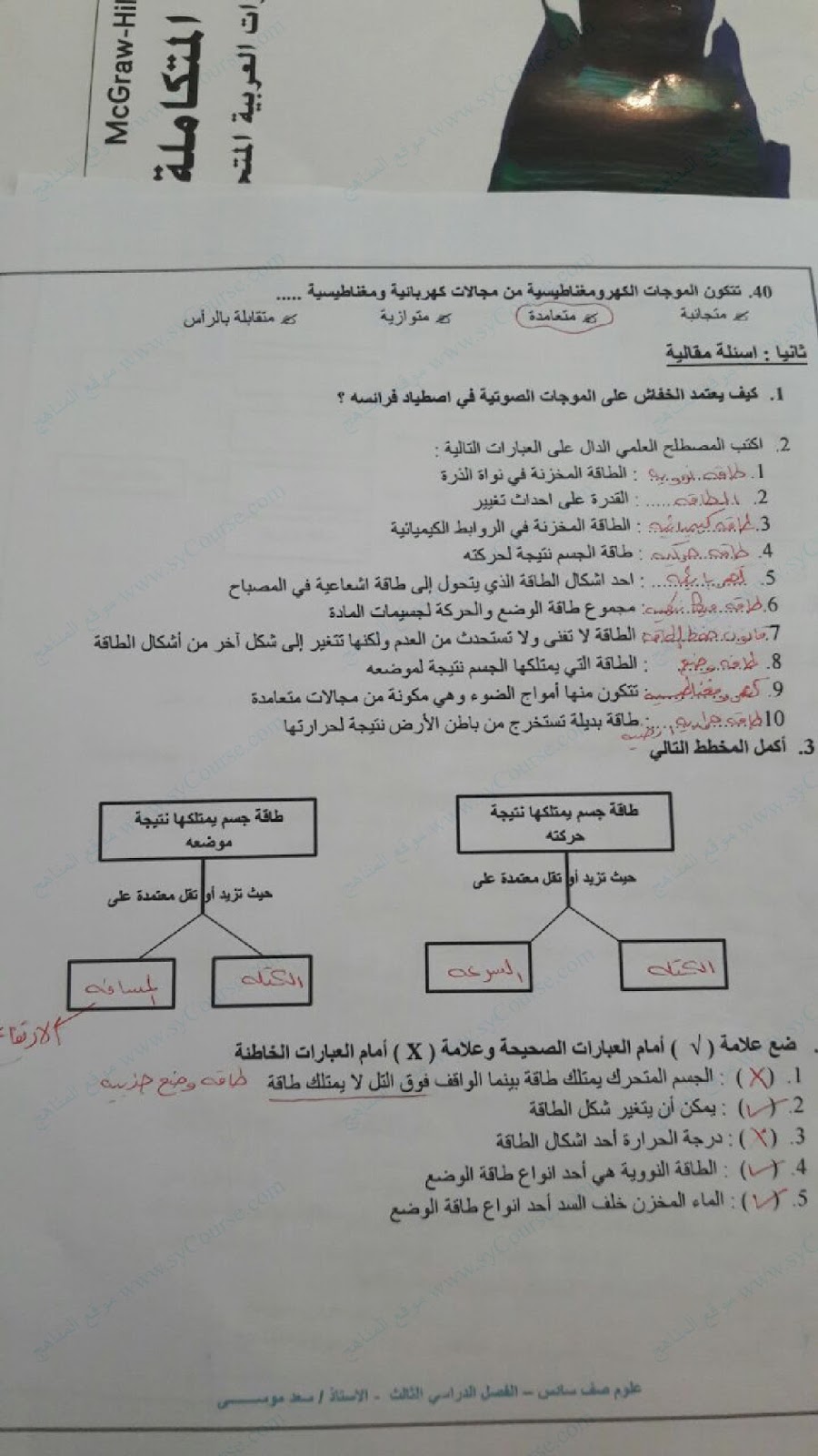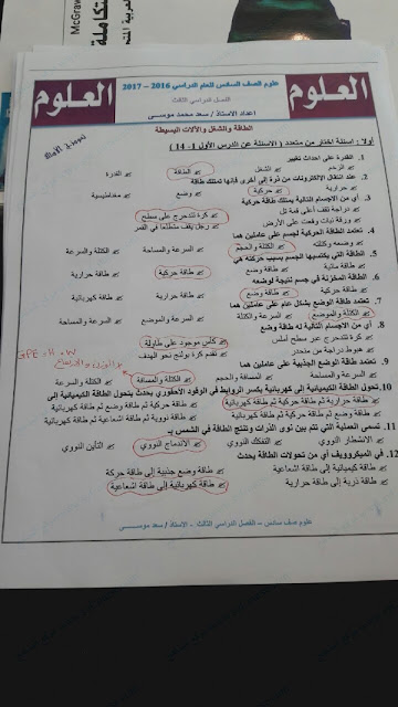 معلومات الملف: الصف السادس, الفصل الثالث, علوم,نموذجأسئلة محلولة | |||