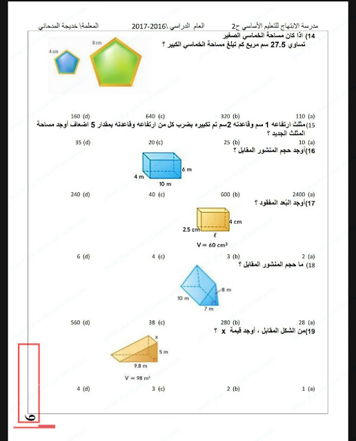 السابق: مراجعة وحدة المساحة. | الملف الحالي: 2417 | التالي: مذكرة الاختبارات الوطنية من المدرسة الأهلية الخيرية |