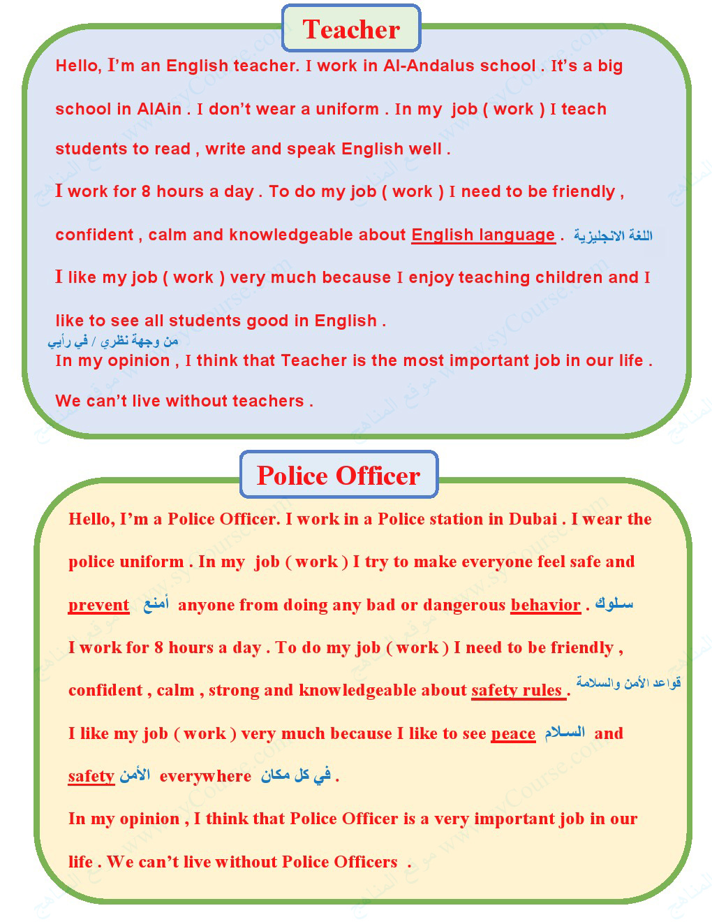 | طريقة كتابة المواضيع+ مواضيع حول Doctor +Teacher+ Police Officer+ Car mechanic | ||