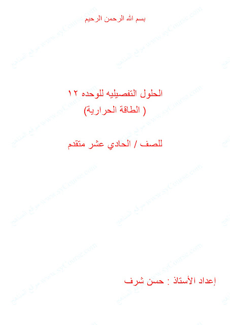معلومات الملف: الصف الحادي عشر المتقدم, الفصل الثالث, فيزياء, حلول تفصيلية للوحدة 12 | ||