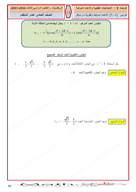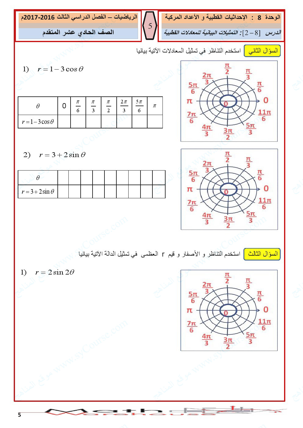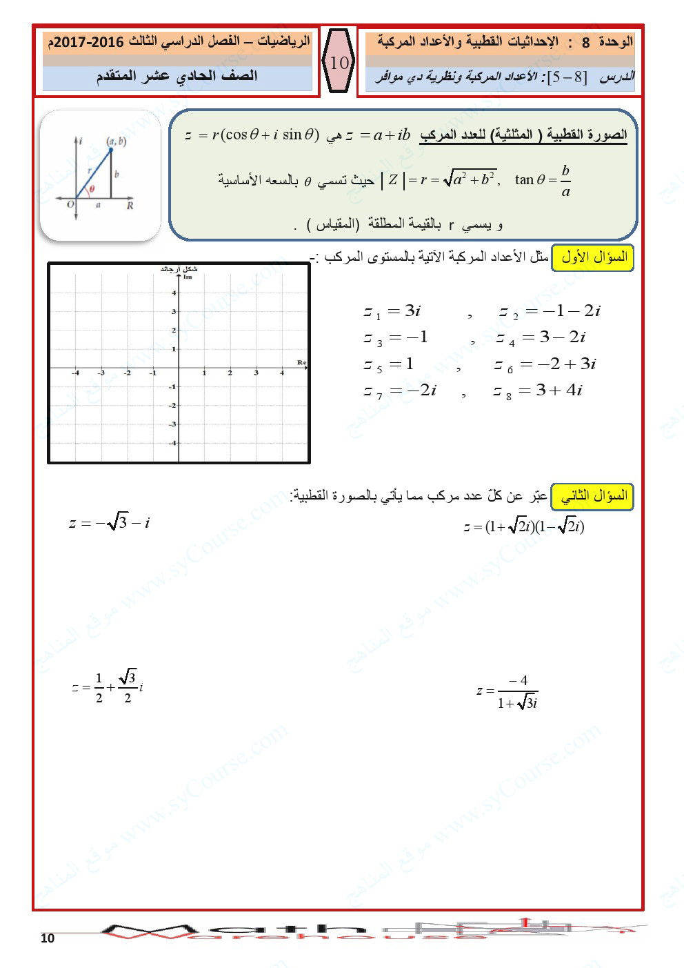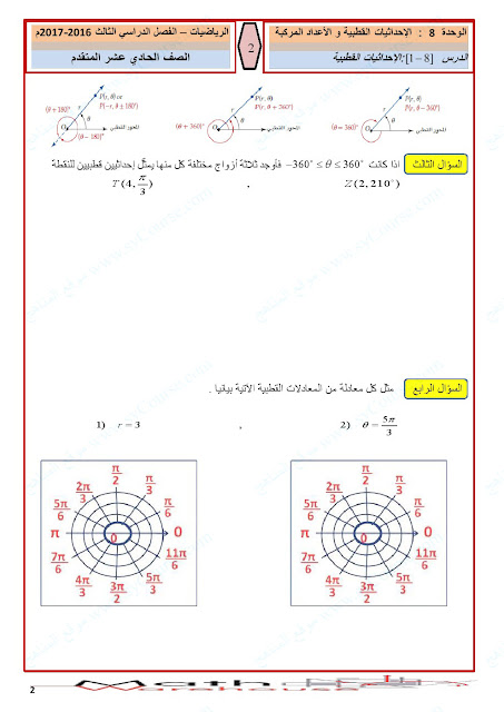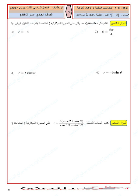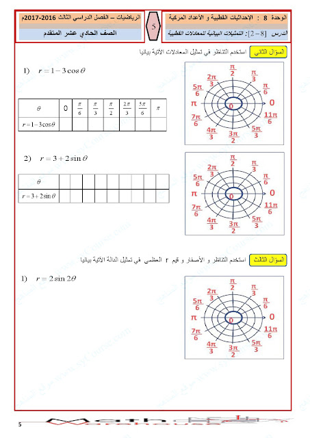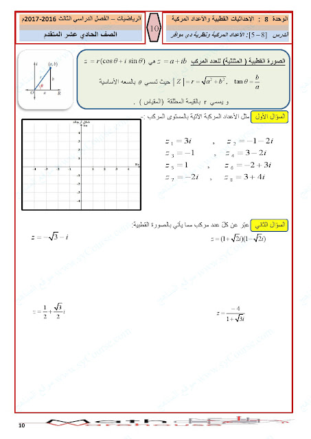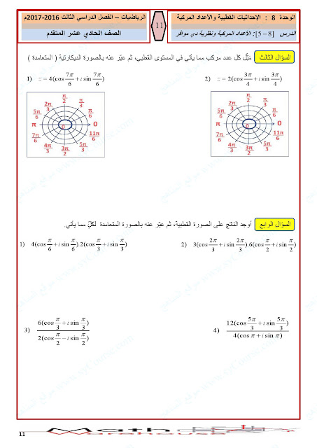 أوراق عمل الاحداثيات القطبية والأعداد المركبة | ||
