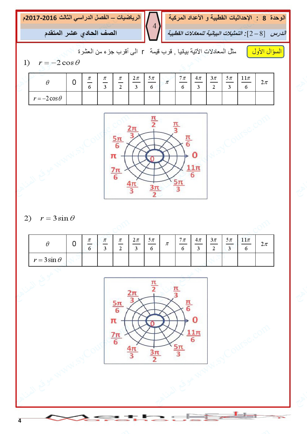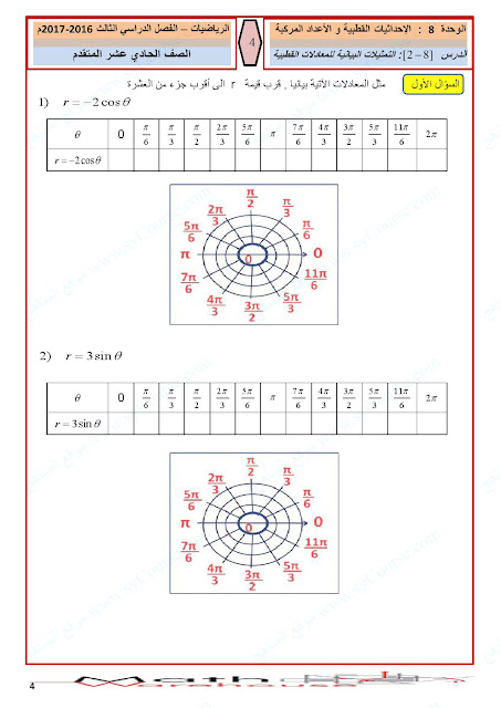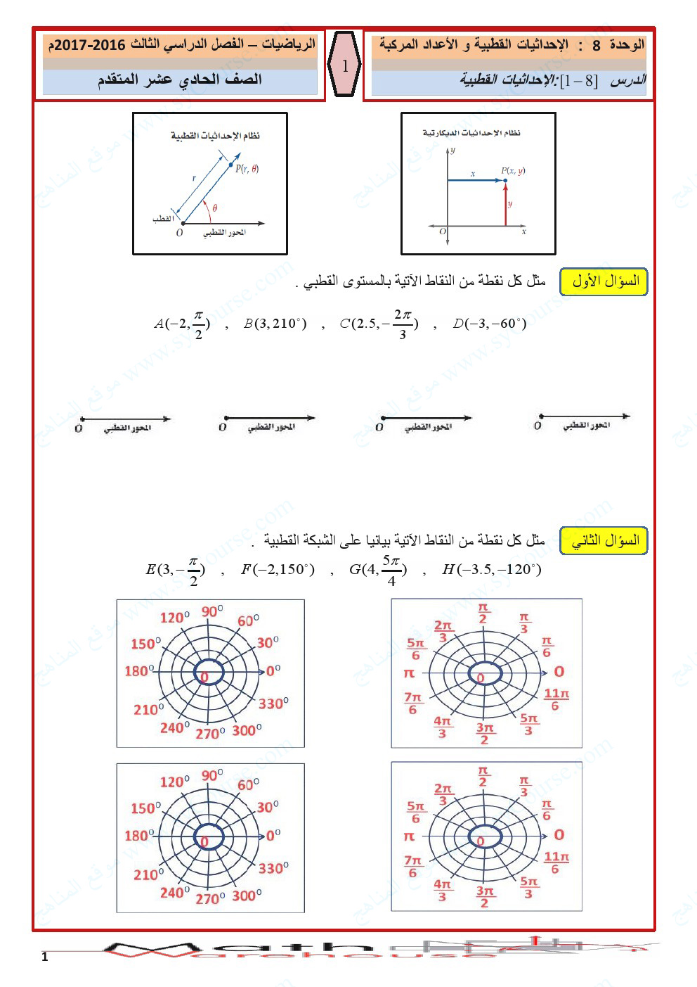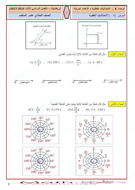 | أوراق عمل الاحداثيات القطبية والأعداد المركبة | ||