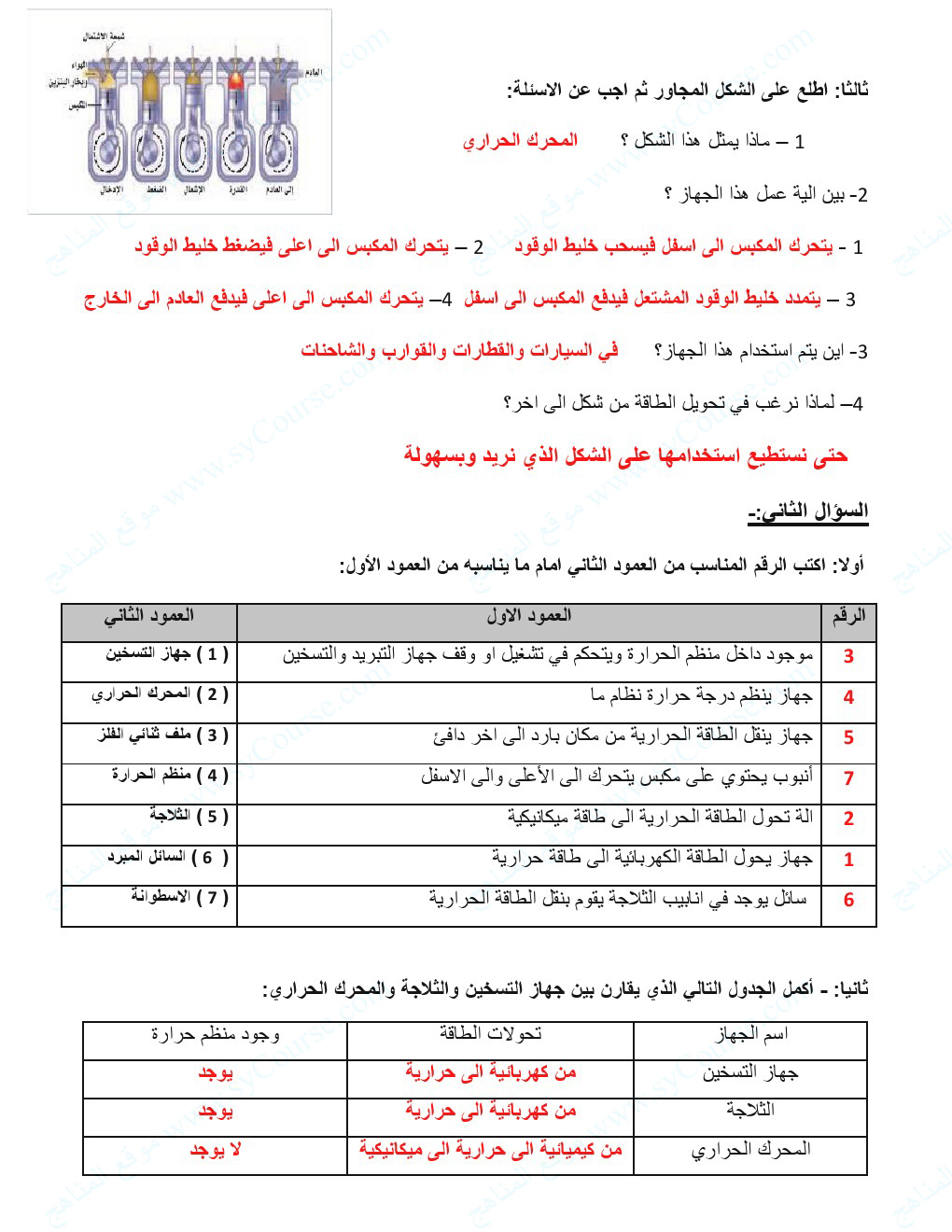 اجابة درس استخدام الطاقة الحرارية | ||