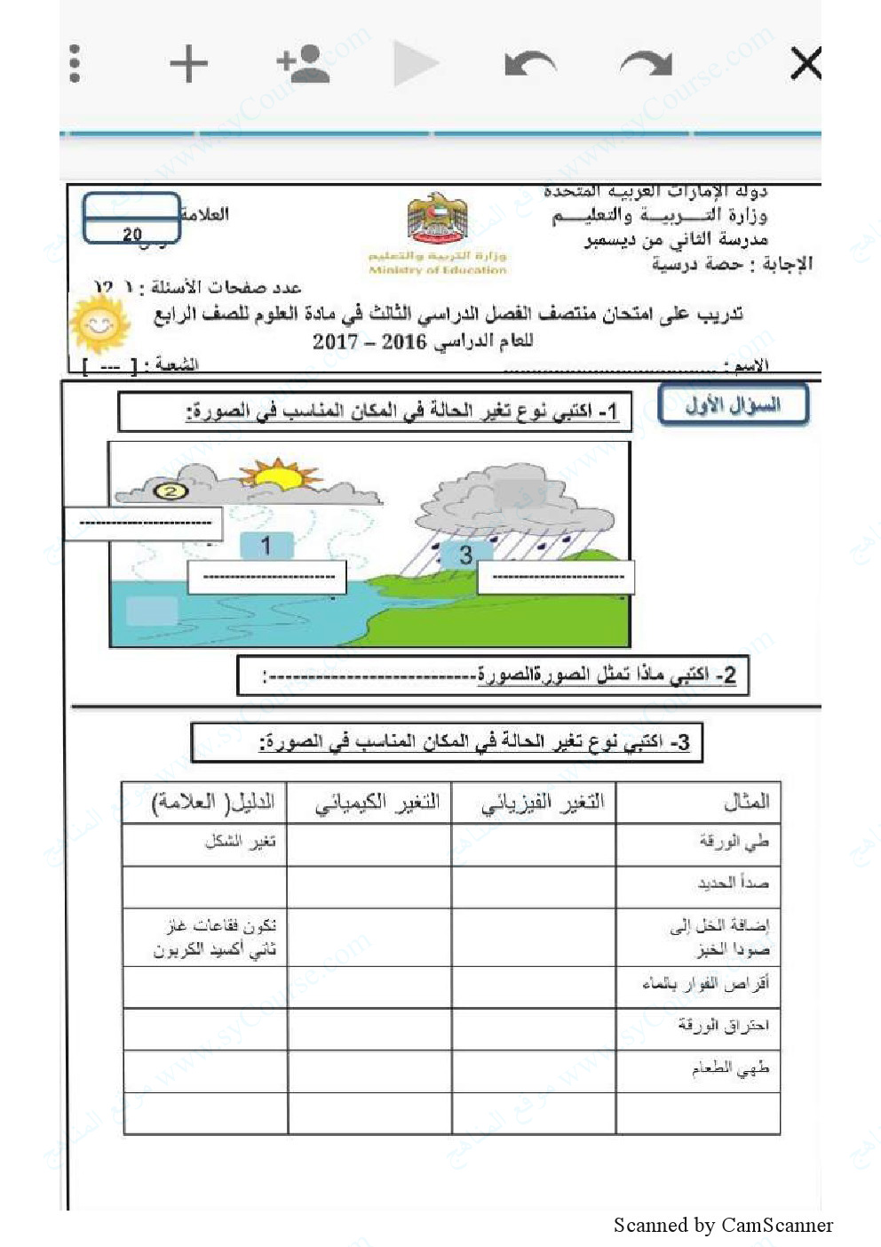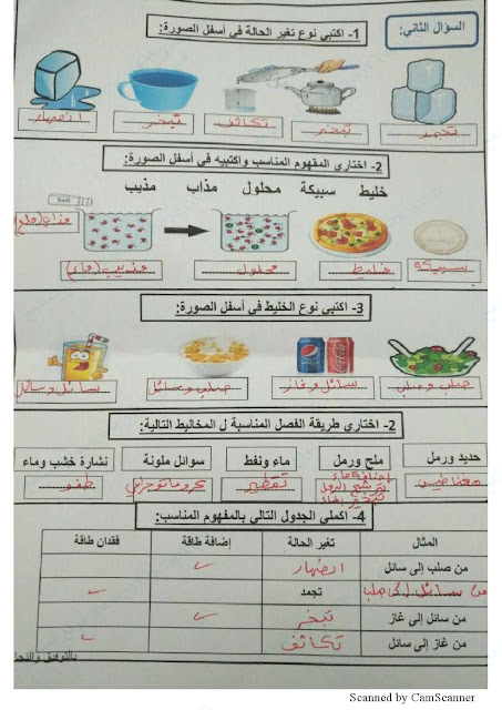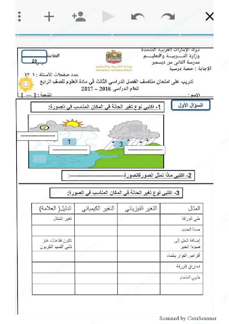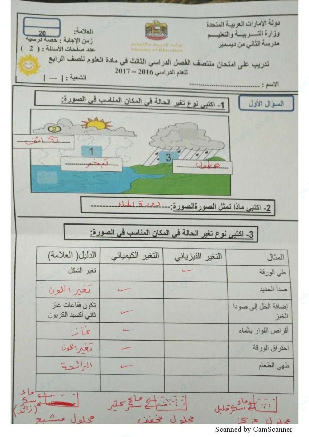 الصف الرابع, الفصل الثالث, علوم, نموذج تدريبي لامتحان منتصف الفصل الثالث+ الاجابة للعام الدراسي 2016-2017