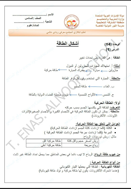 الصف السادس, الفصل الثالث, علوم, أوراق عمل (أشكال الطاقة) للتحميل اتبع الرابط التالي: http://aefiles.website/do.php?id=510">http://aefiles.website/do.php?id=510