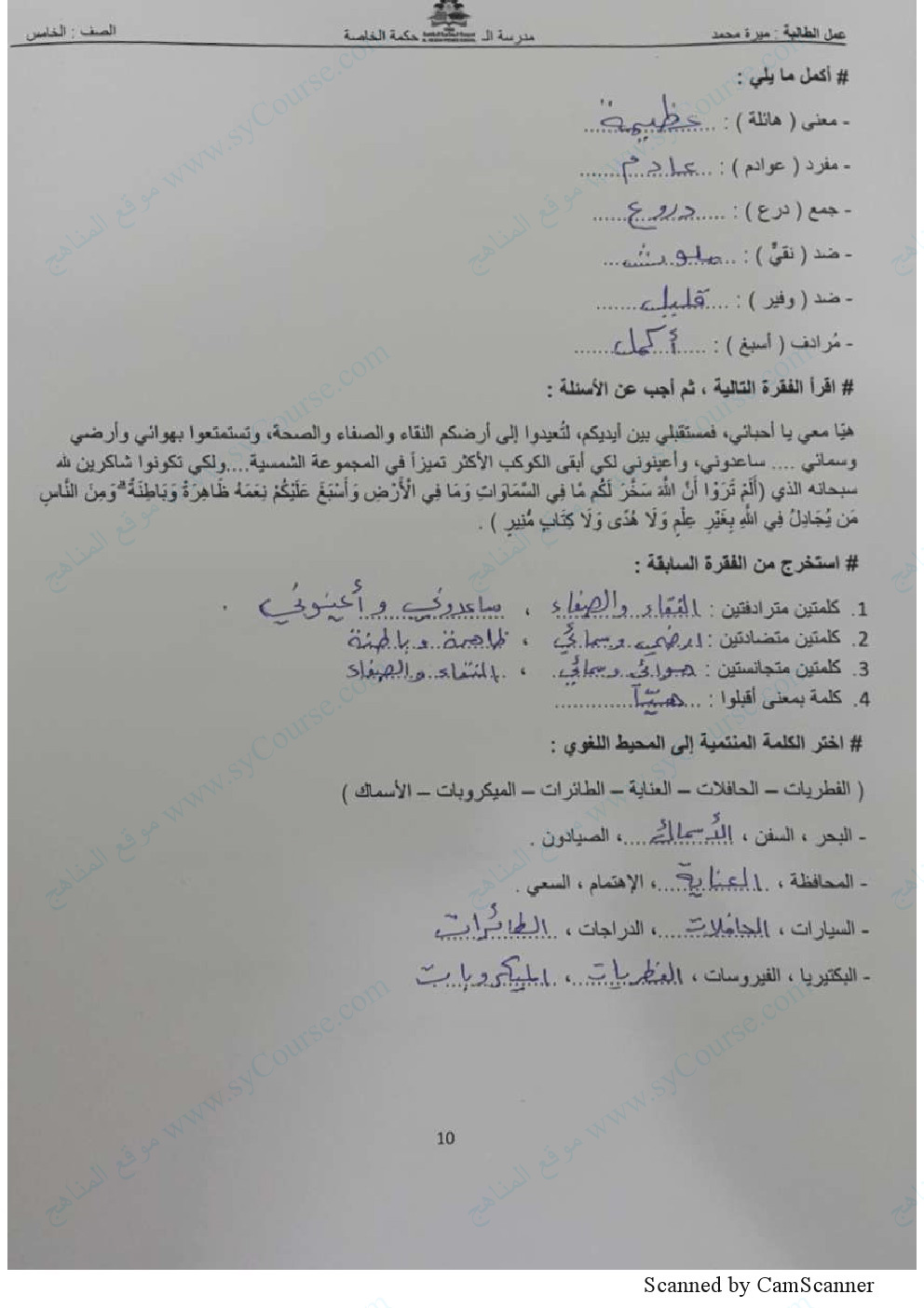 معلومات الملف: الصف الخامس, الفصل الثالث, لغة عربية, حل الوحدة الثالثة | ||