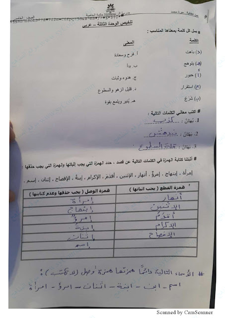 الصف الخامس, الفصل الثالث, لغة عربية, حل الوحدة الثالثة وهي من إعداد المدرس: محمد