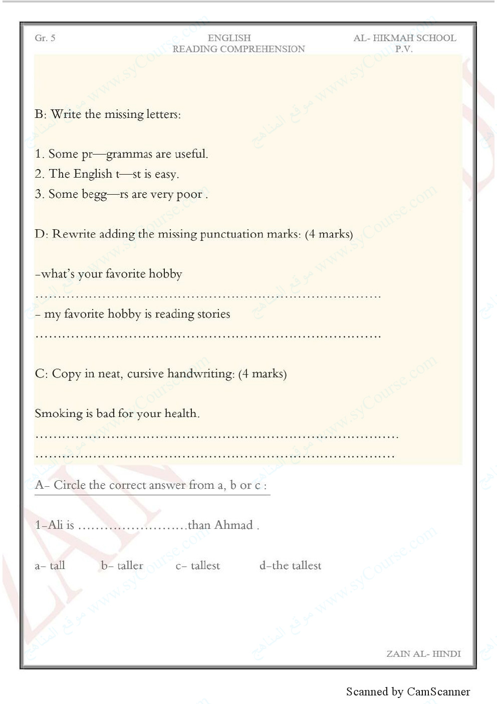 | المادة: لغة انجليزية | |||